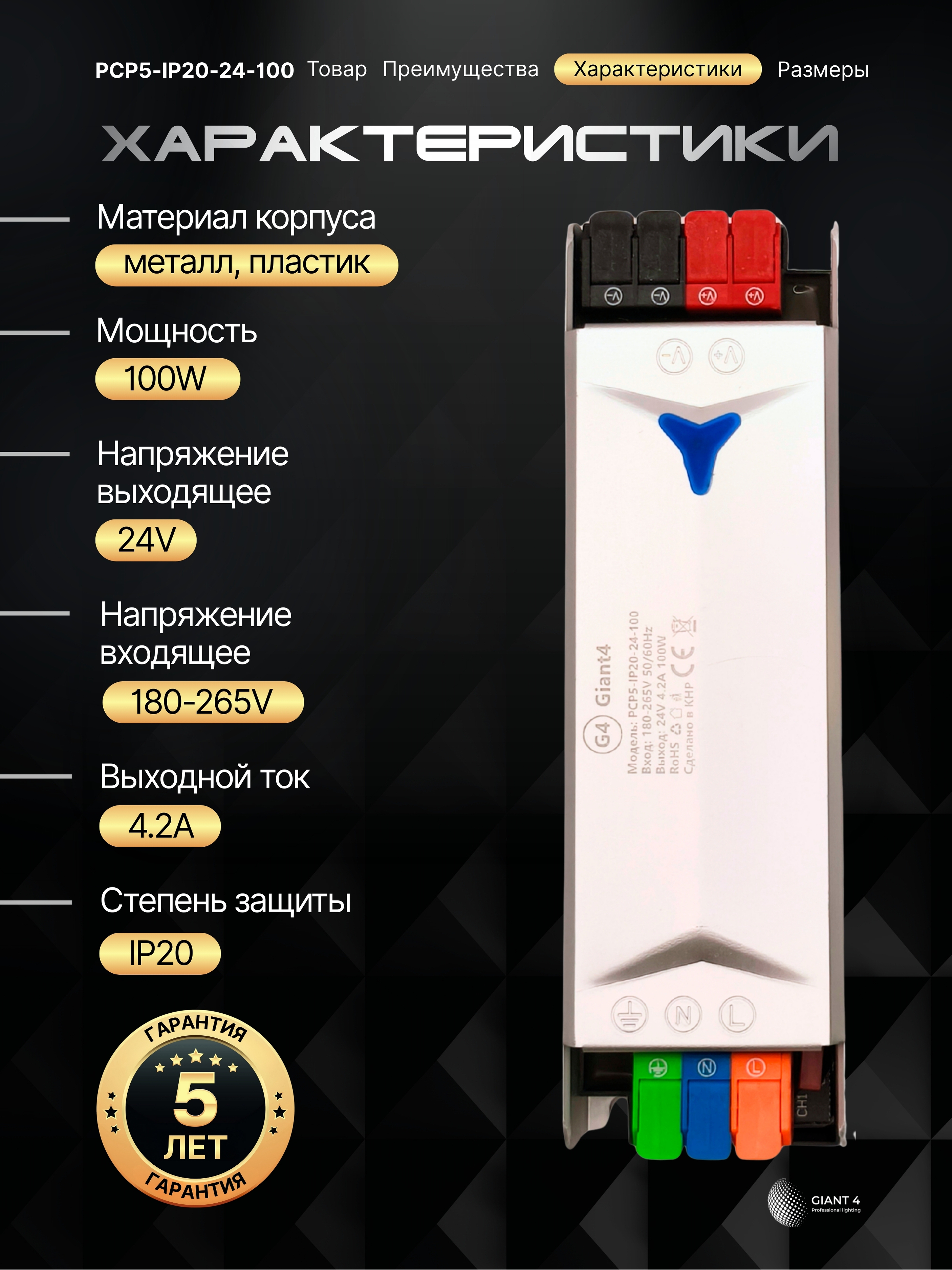 Блок питания 100Вт 24В 4.2А серии Premium создан для проектов, где важна надежность и качество электропитания. Этот импульсный блок непрерывно отдает полную номинальную мощность 100Вт, обеспечивая стабильное напряжение даже под высокой нагрузкой, без риска перегрева.