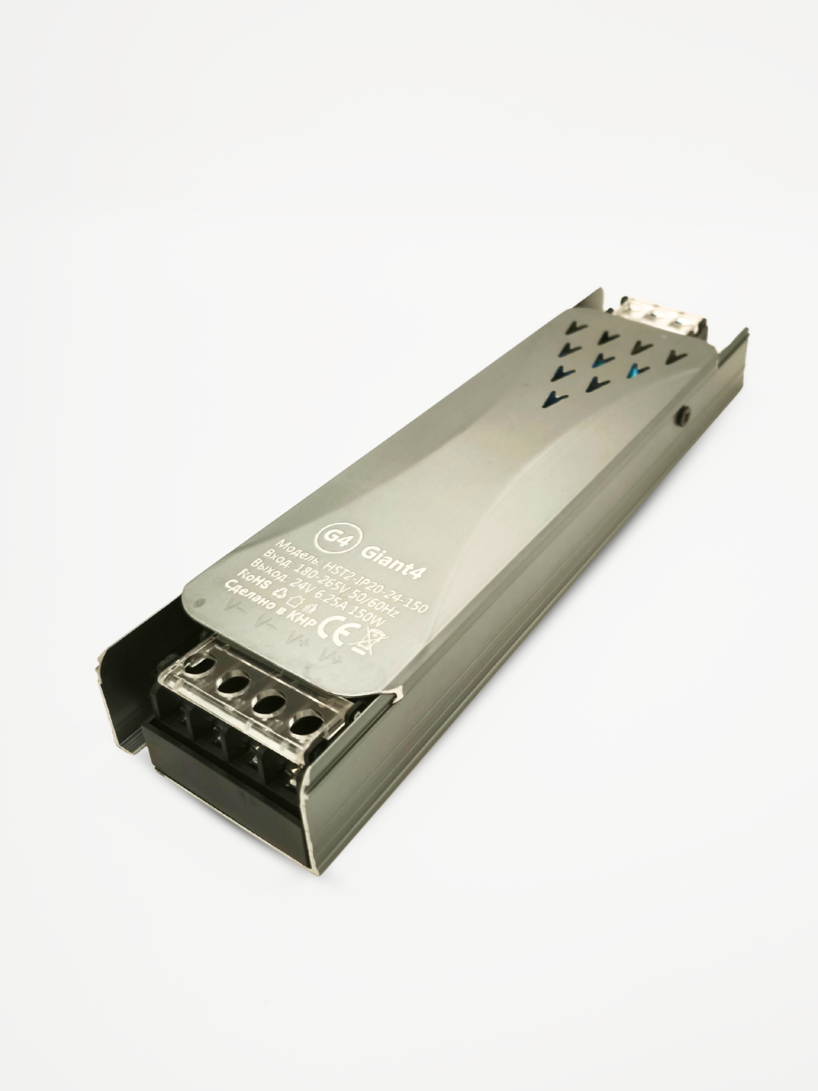 Корпус блока питания изготовлен из алюминия, форма сделана специально максимально узкой и плоской, чтобы блок умещался в ниши, мебель, полки или, например, помещался под натяжным потолком любой высоты. В большинстве случаев такая форма позволяет установить узкие блоки питания 24v там, где другие блоки просто не уместились бы.