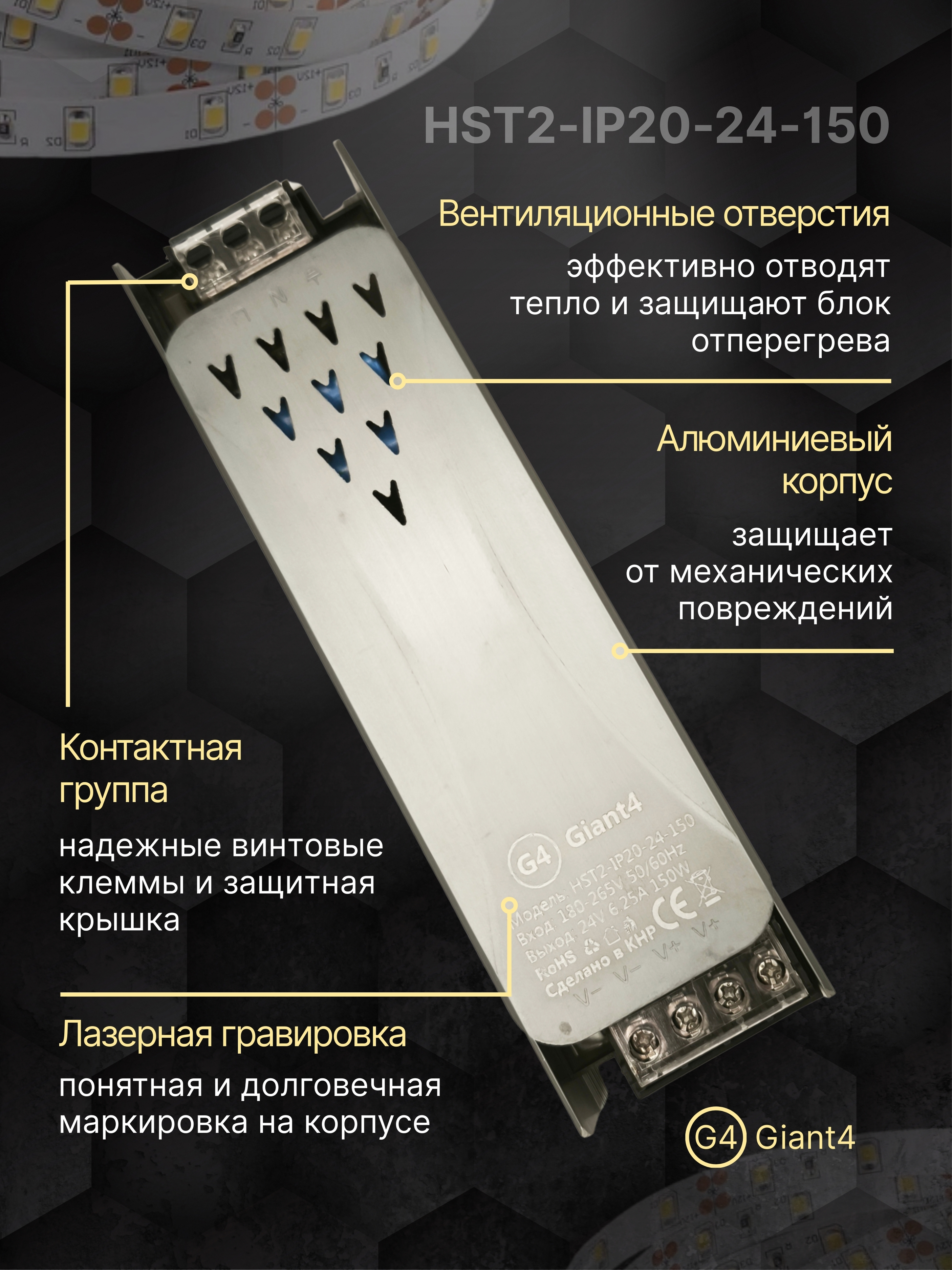 Блок питания для светодиодной ленты 24v 150w 6.25a ip20