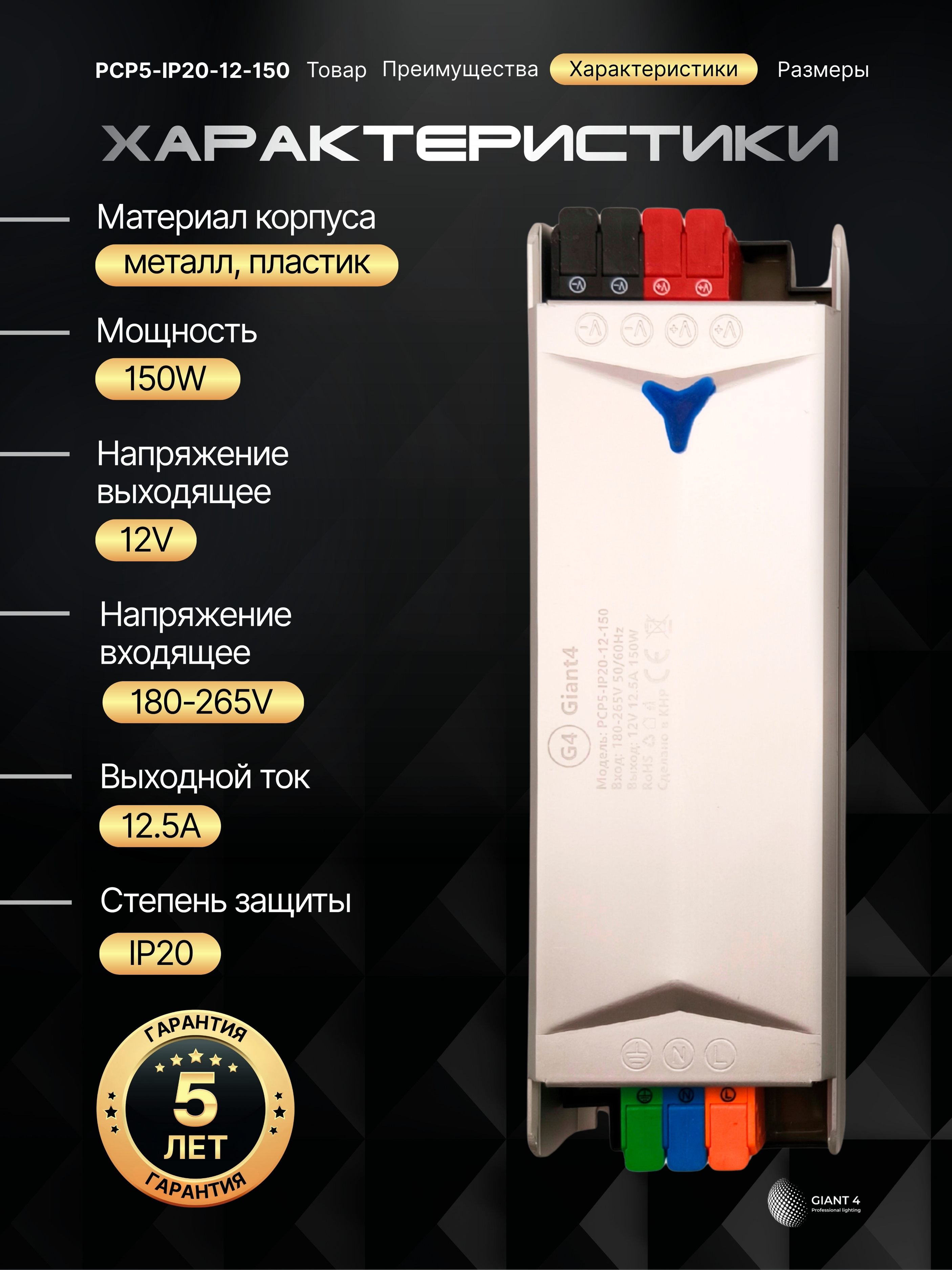 Блок питания 150Вт 12.5А 12В из серии Premium - это надежное решение для проектов с высокими требованиями к качеству и стабильности электропитания. Устройство способно круглосуточно работать на полной мощности в 150 ватт, обеспечивая неизменное выходное напряжение даже при пиковых нагрузках.