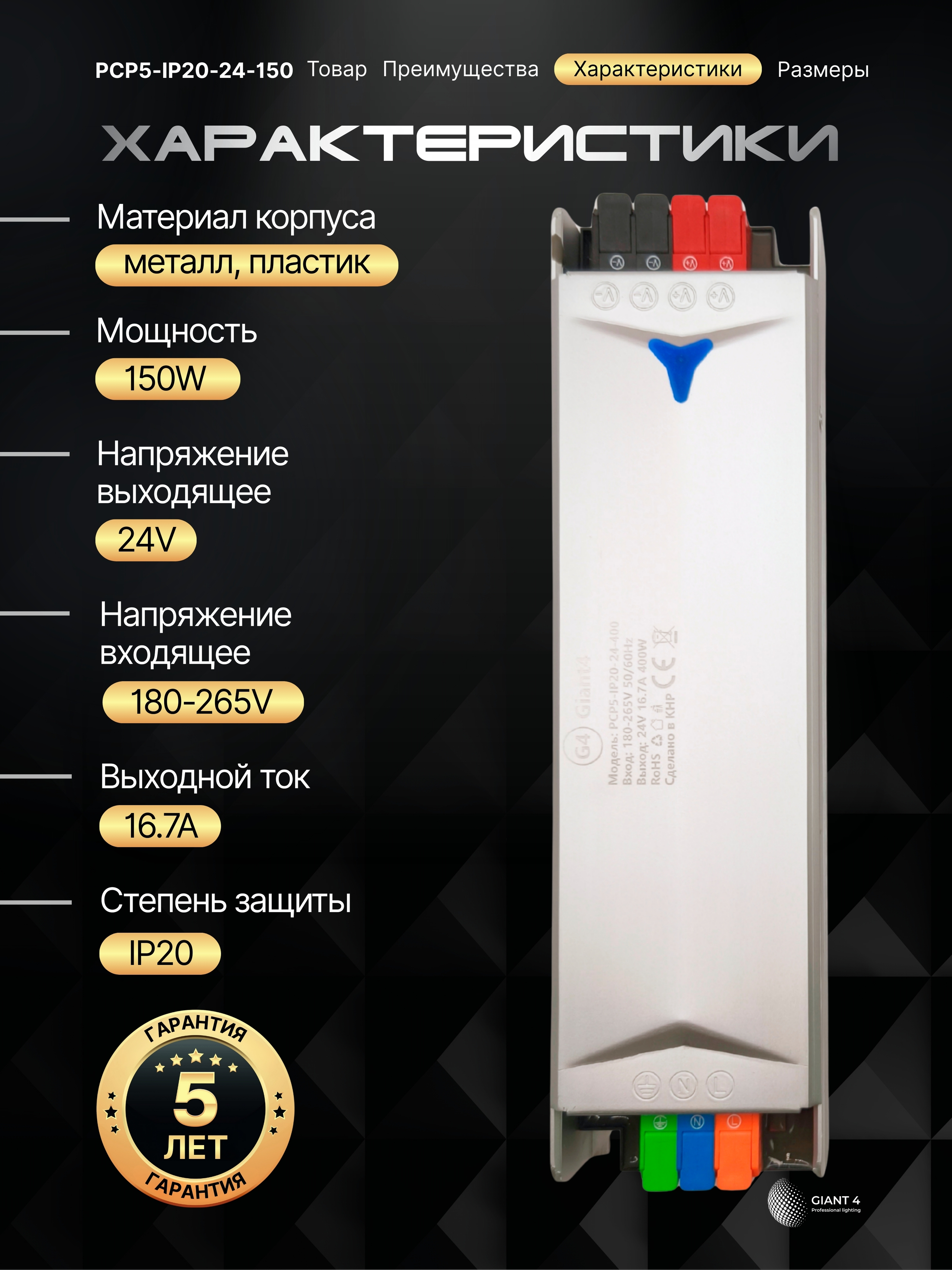 Источник питания 150Вт 24В 6.25A из серии Premium разработан для реализации самых требовательных проектов, где критичны стабильность и качество электроэнергии. Данный импульсный блок готов непрерывно работать на полной мощности в 150Вт, поддерживая стабильное напряжение под нагрузкой и не перегреваясь.