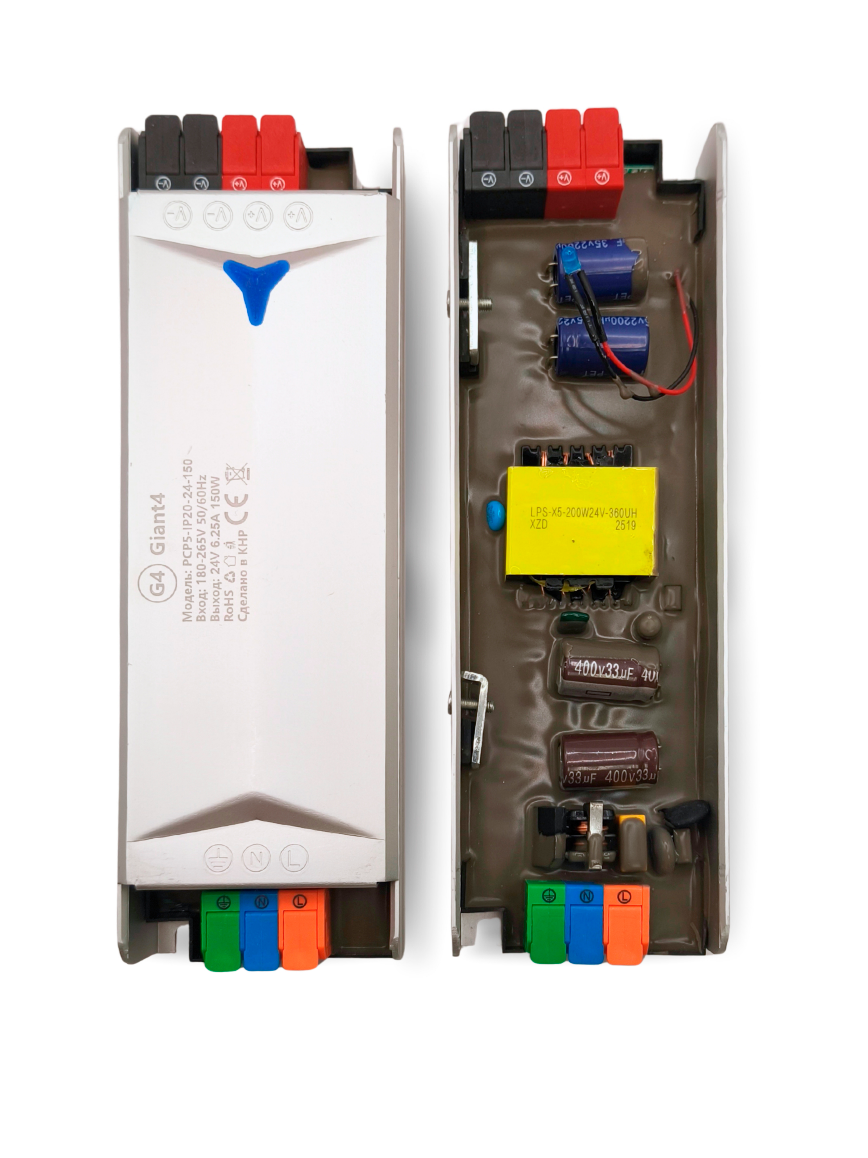 Обе стороны блока питания 150Вт 24В оснащены современными клеммниками зажимного типа. Процесс подключения светодиодной ленты максимально упрощен: откройте клапан, вставьте провод и закройте его. Монтаж занимает минимум времени и не требует специальных навыков или инструментов, что делает его доступным даже для новичков.