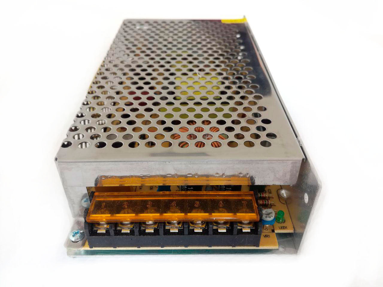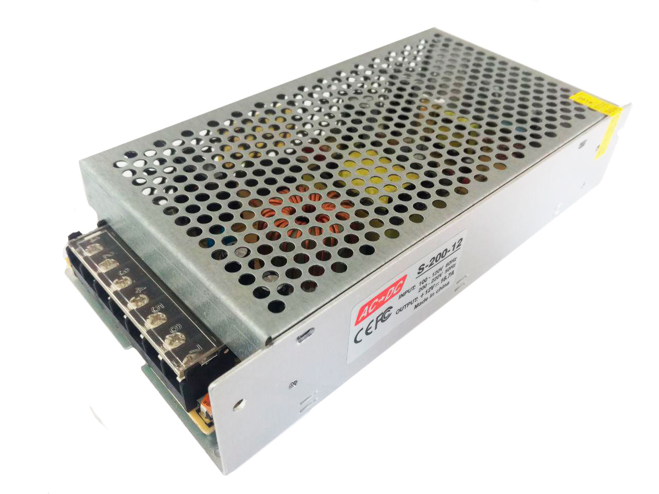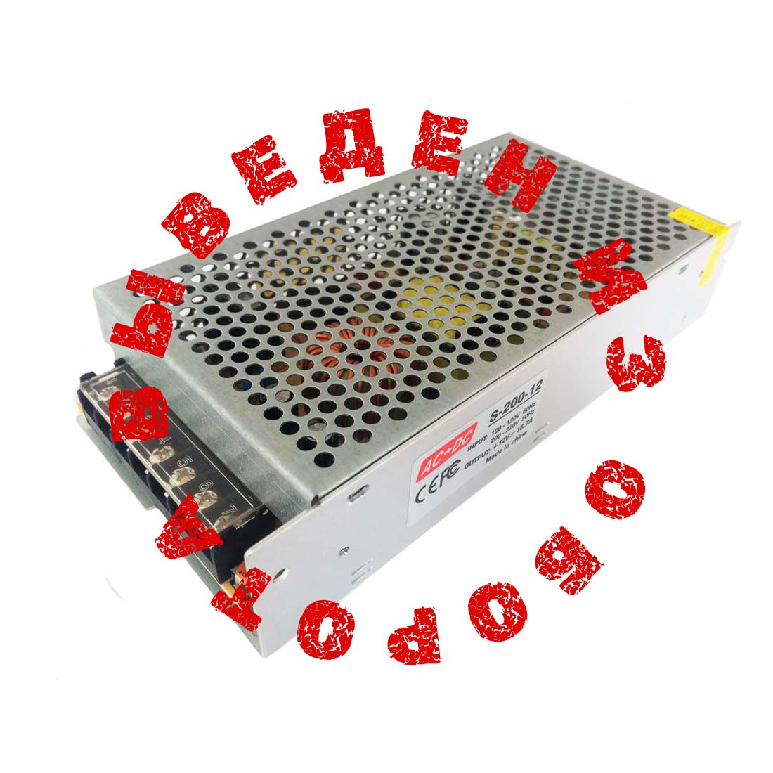 Блок питания (трансформатор) для светодиодной ленты на 200Вт 16.6А. Достаточно мощный чтобы подключить 35 метров ленты 2835 60led или 10 метров ленты 5050 60led. Это один из самых мощных не гудящих блоков питания. Прост в подключении и надежен. Это устройство преобразует стандартное для нашей электросети напряжение 220v AC в 12v постоянного тока (DC), необходимое для работы большей части светодиодного освещения, в частности - светодиодных лент, линеек и модулей. Чтобы продлить срок службы блока питания вы можете рассчитывать его с запасом мощности. В теории чем больше запас тем больше срок службы. Например, если вы возьмете этот блок на 200 Вт и подключите к нему не 12 метров ленты 5050, а только 6, то его ресурс будет расходоваться гораздо медленнее, он станет более устойчив к внезапным отключениям света и скачкам напряжения. Конечно, на практике никто не берет такой большой запас. Обычно хватает 20%. Эти 20% мощности пойдут на сопротивление проводов и сгладят скачки напряжения.
