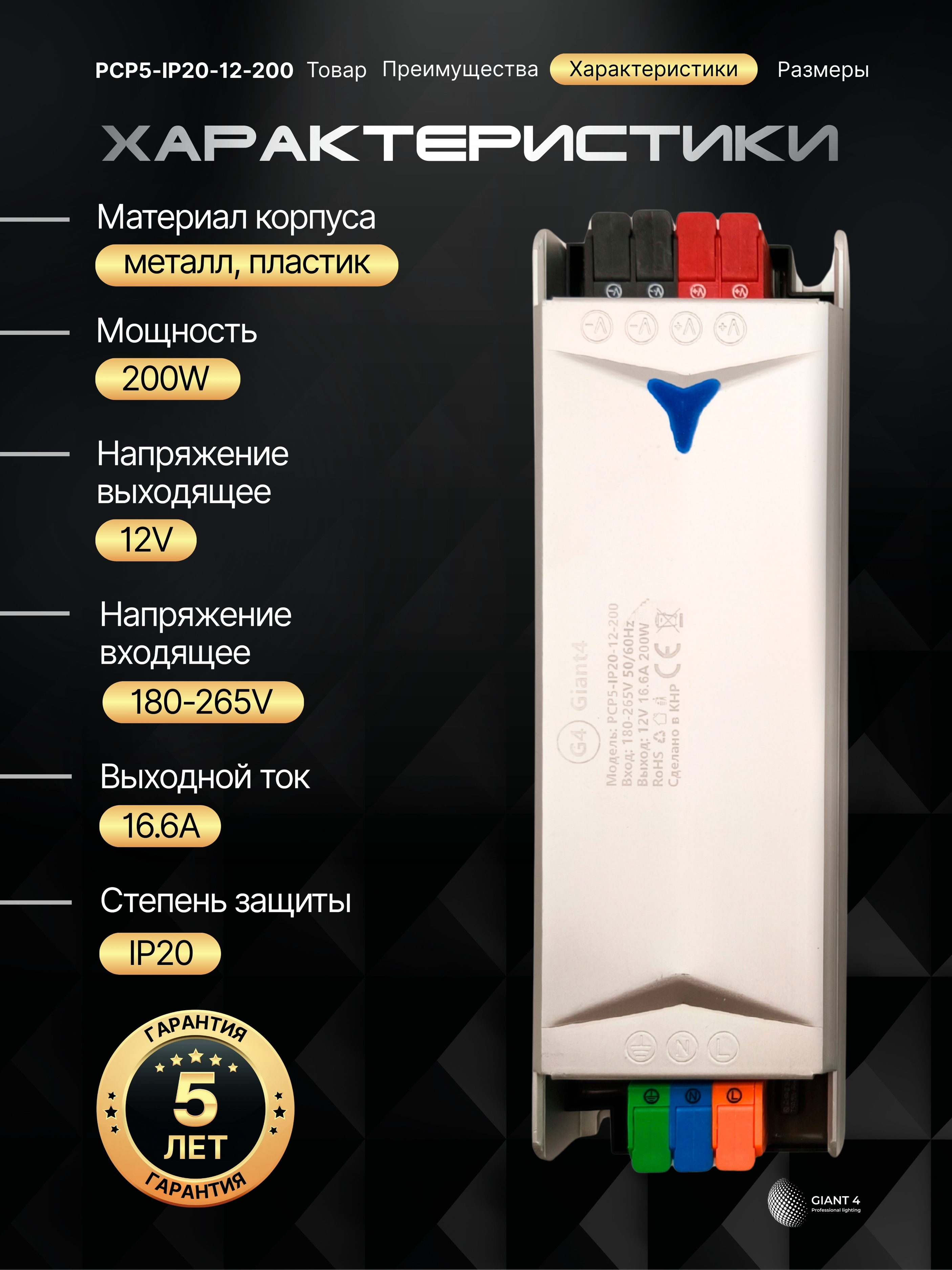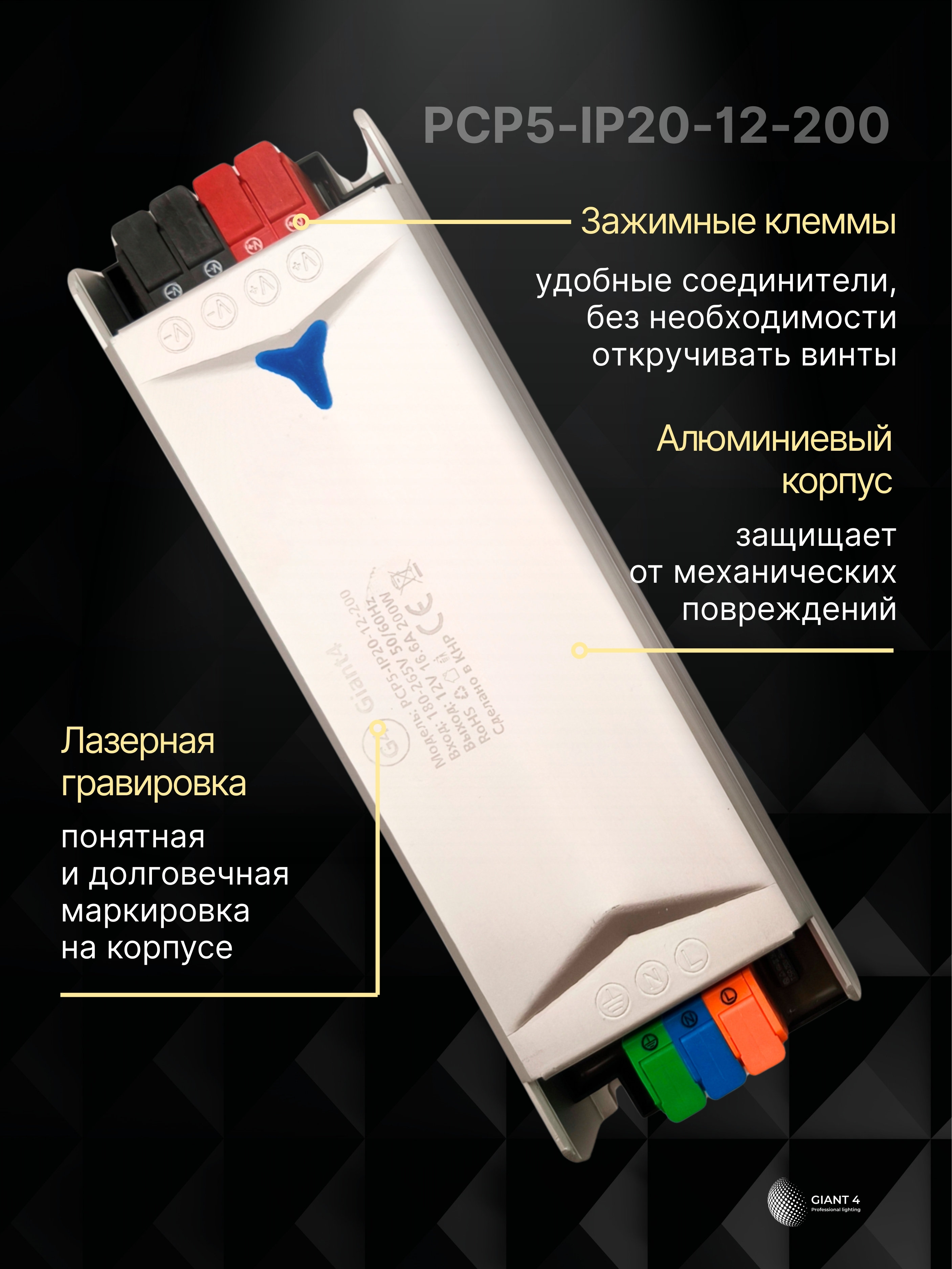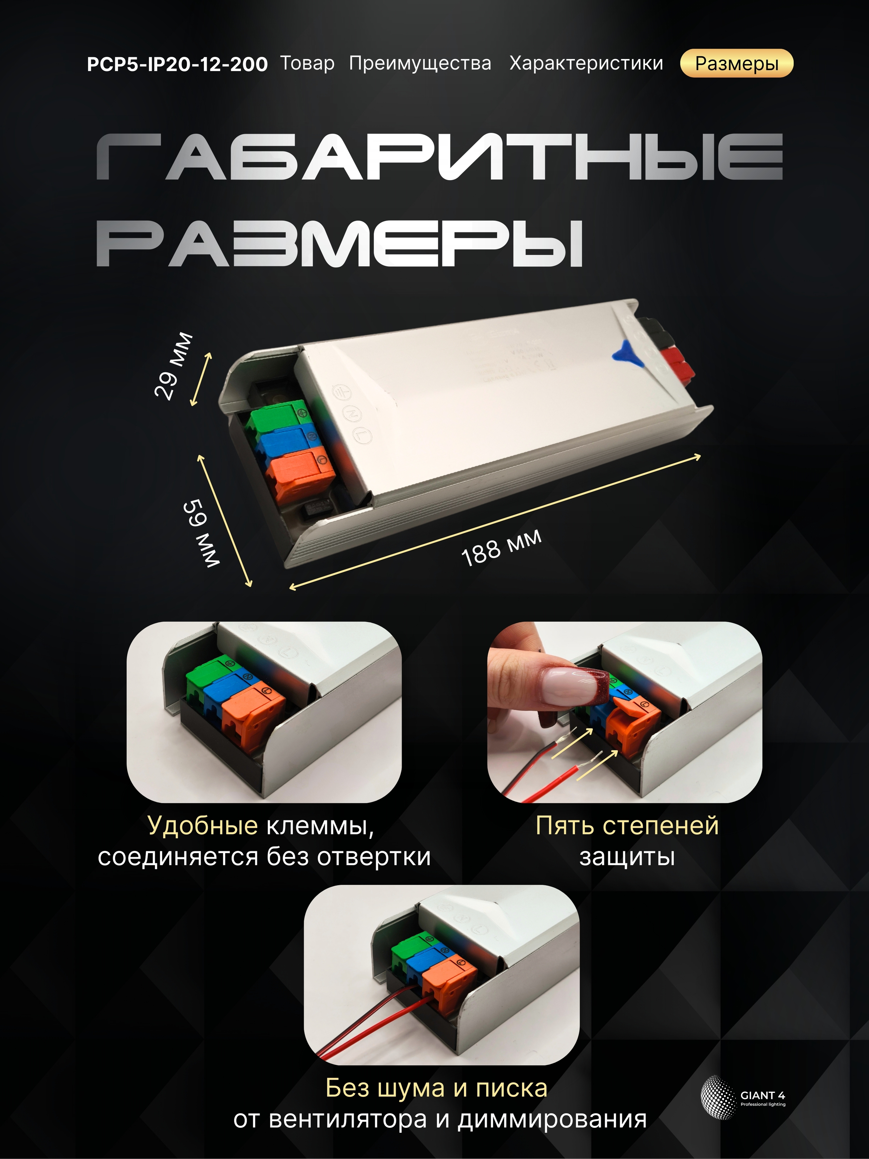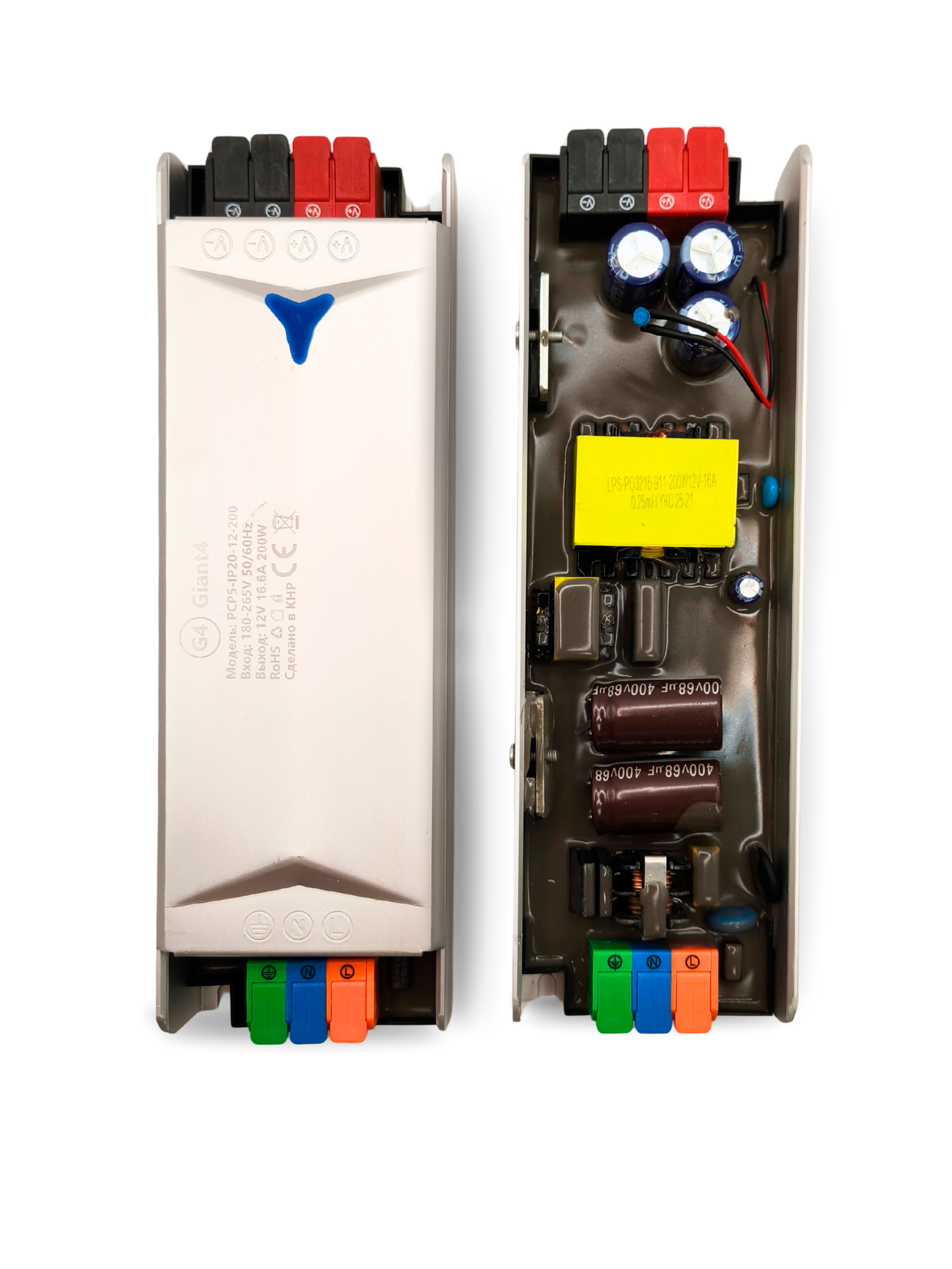 Компактный блок питания мощностью 12В 200 Вт обеспечивает достаточную производительность для организации освещения в жилых и коммерческих интерьерах. Его возможностей достаточно для питания протяжённых или высокомощных светодиодных лент. Отметим, что трансформатор обладает двумя парами (+V и -V) зажимных клемм, которые облегчают процесс монтажа и делают его быстрым и комфортным. Это делает устройство надёжным и универсальным решением как для DIY-проектов, так и для профессионального применения.