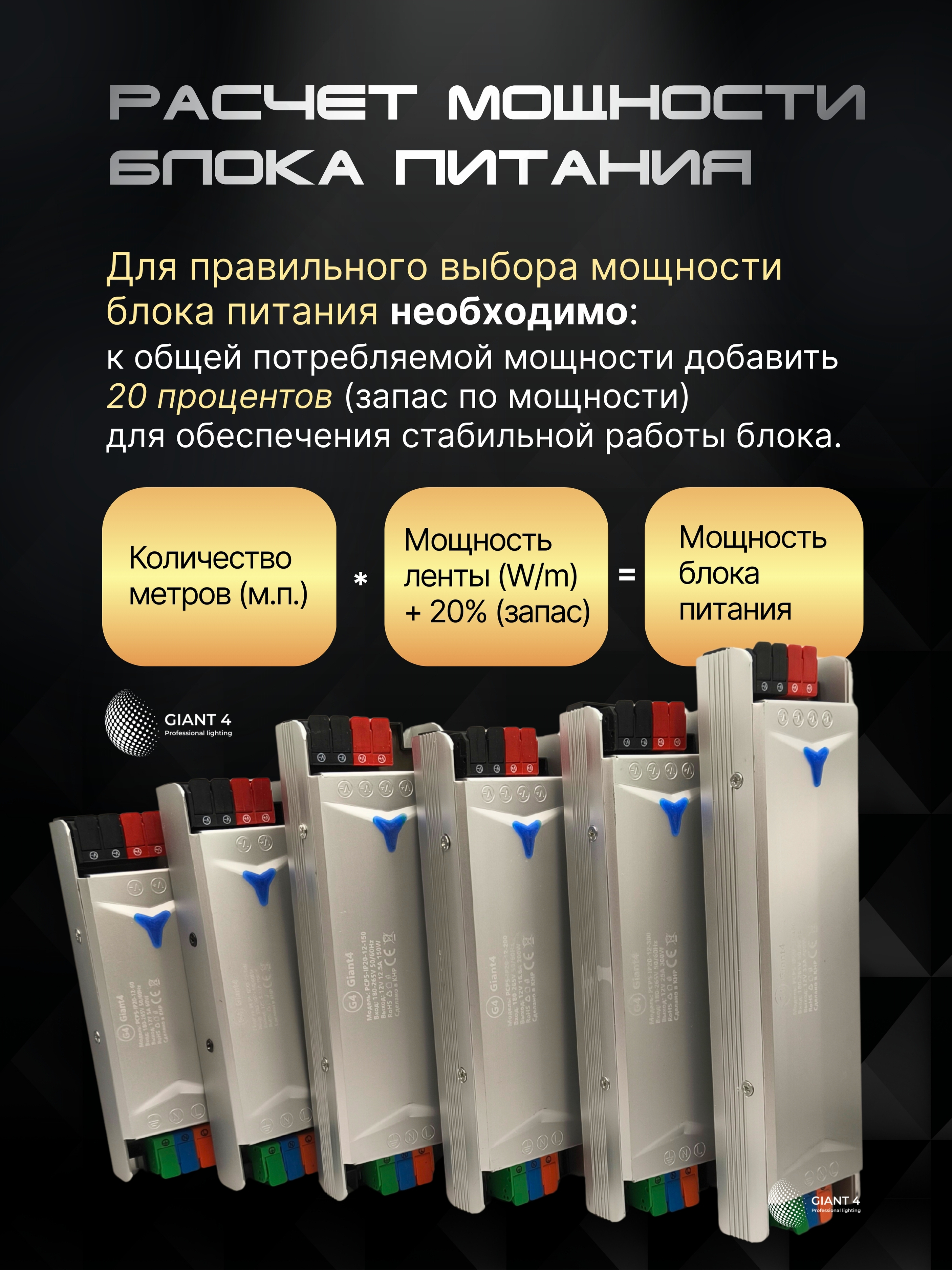 Расчет нагрузки: Для определения максимальной длины подключаемой светодиодной ленты используйте формулу, учитывающую необходимый запас мощности: