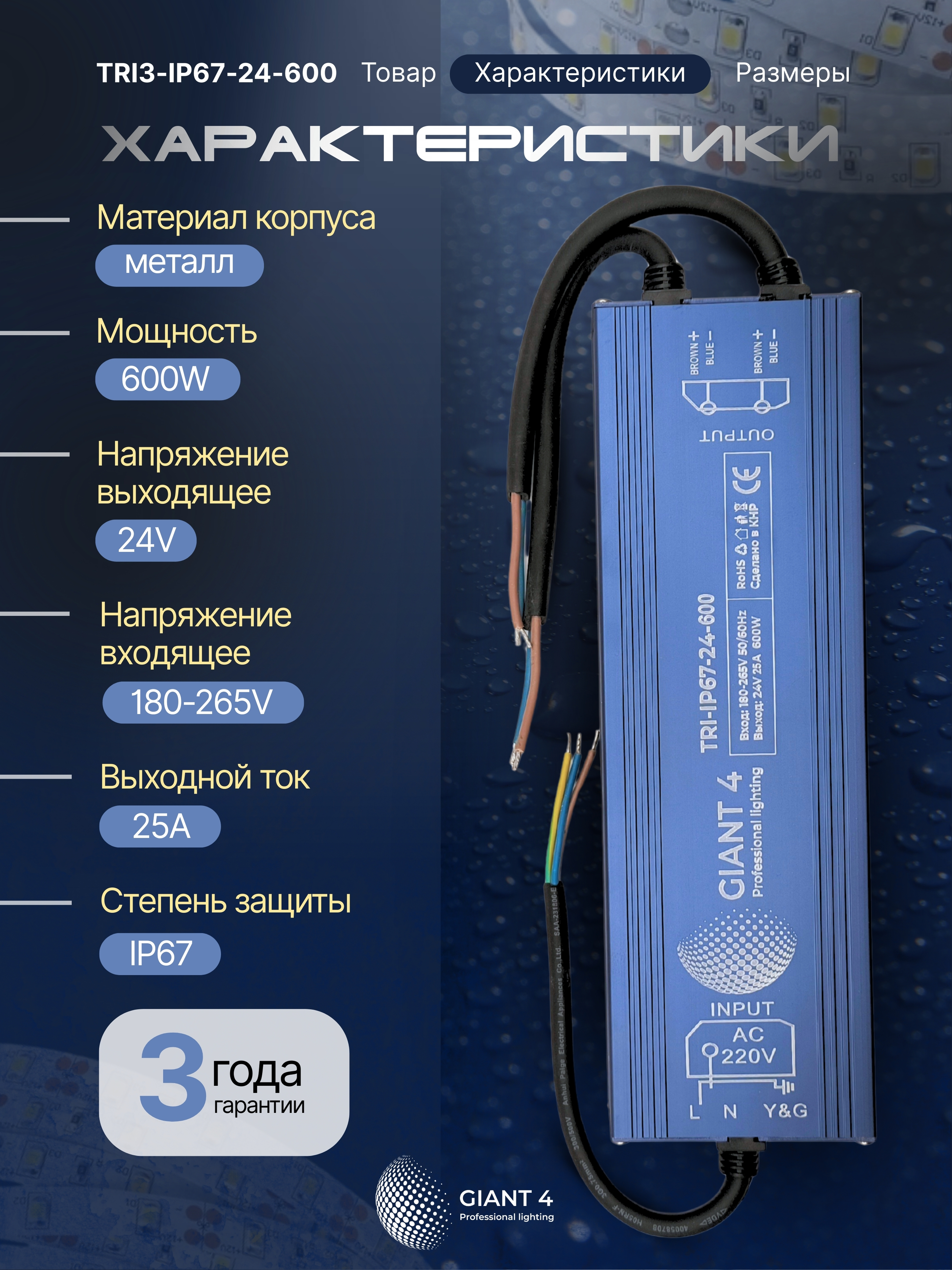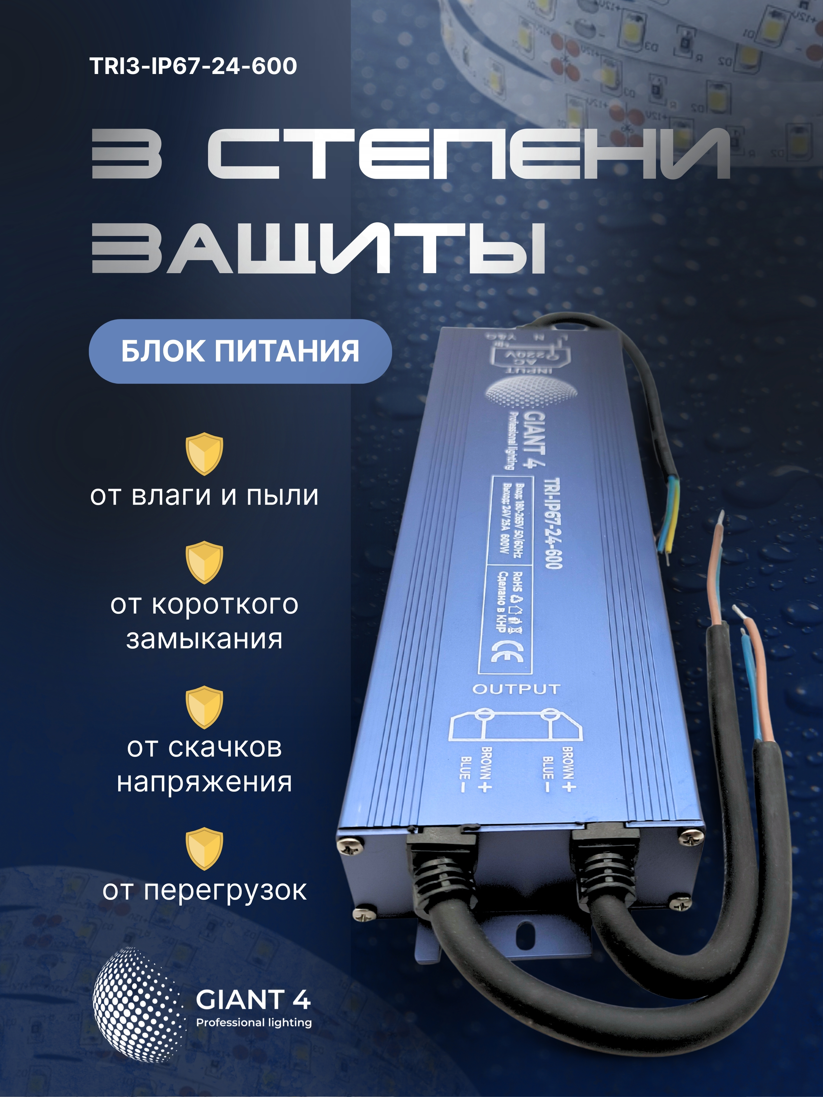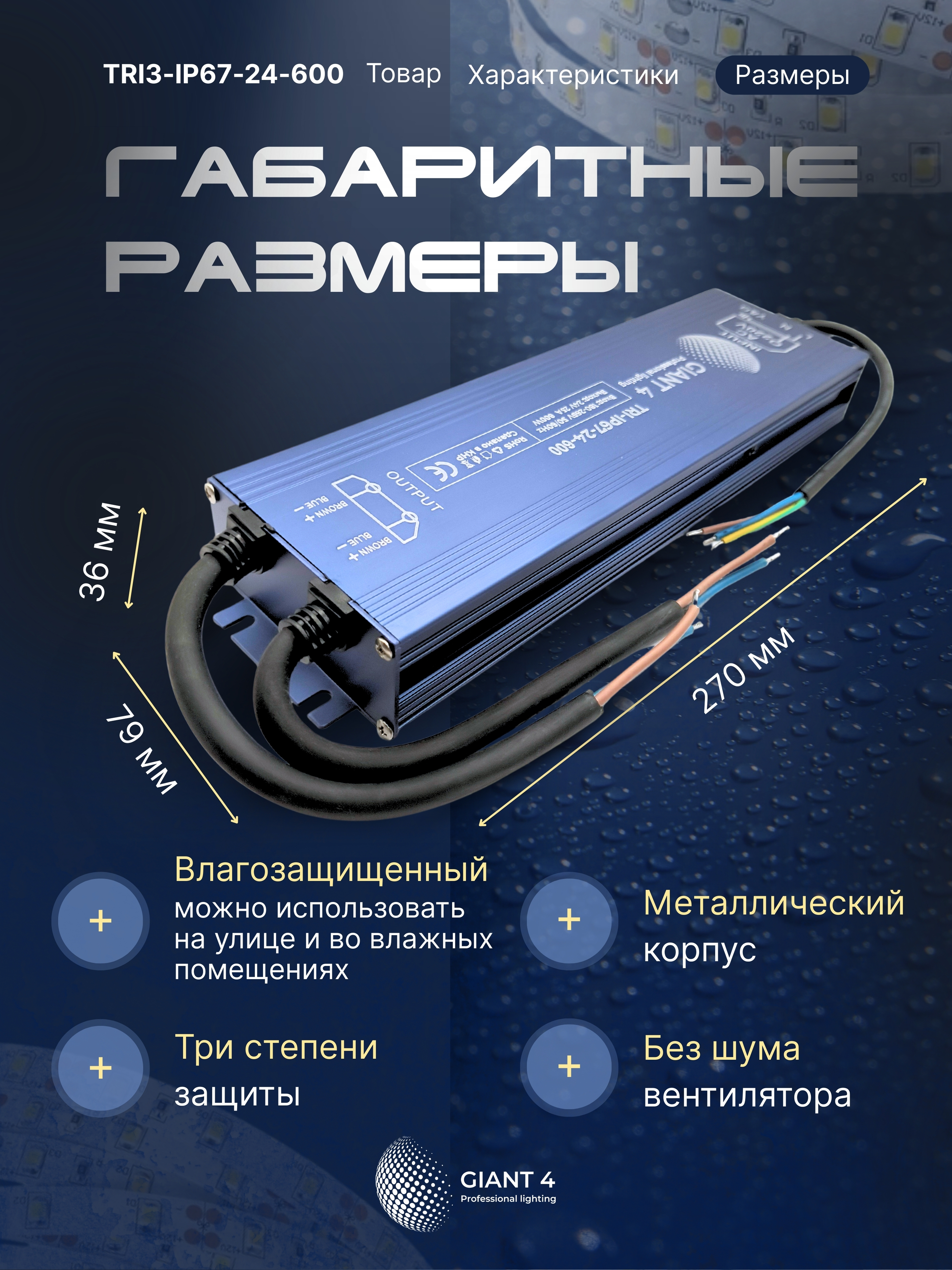 Мощный герметичный блок питания 600Вт 24В с защитой IP67 - отличное решение для самых требовательных проектов. Обеспечивает бесперебойную работу мощных светодиодных систем в экстремальных условиях. Идеально подходит для масштабной архитектурной подсветки, яркой рекламы и сложных уличных инсталляций.
