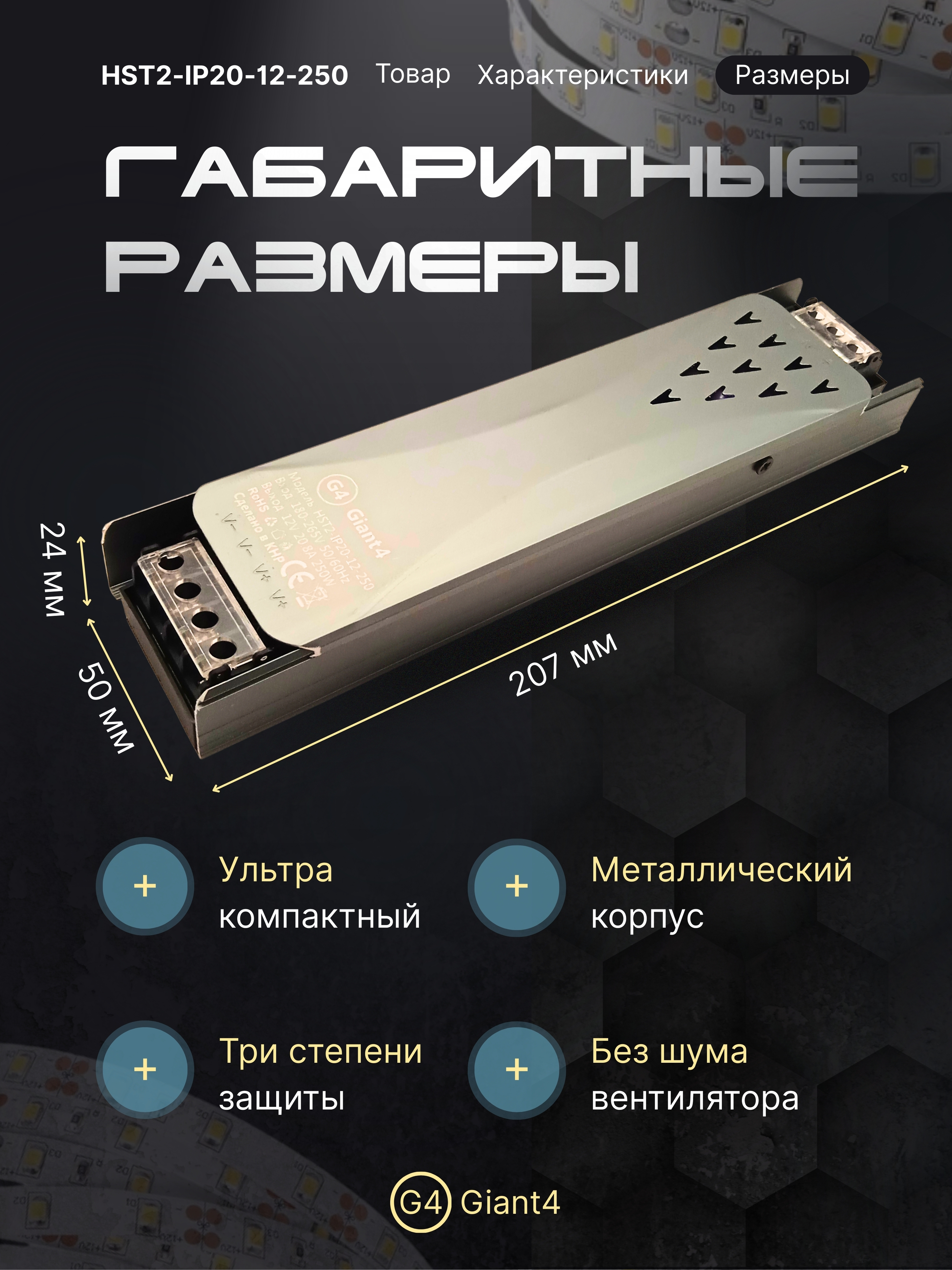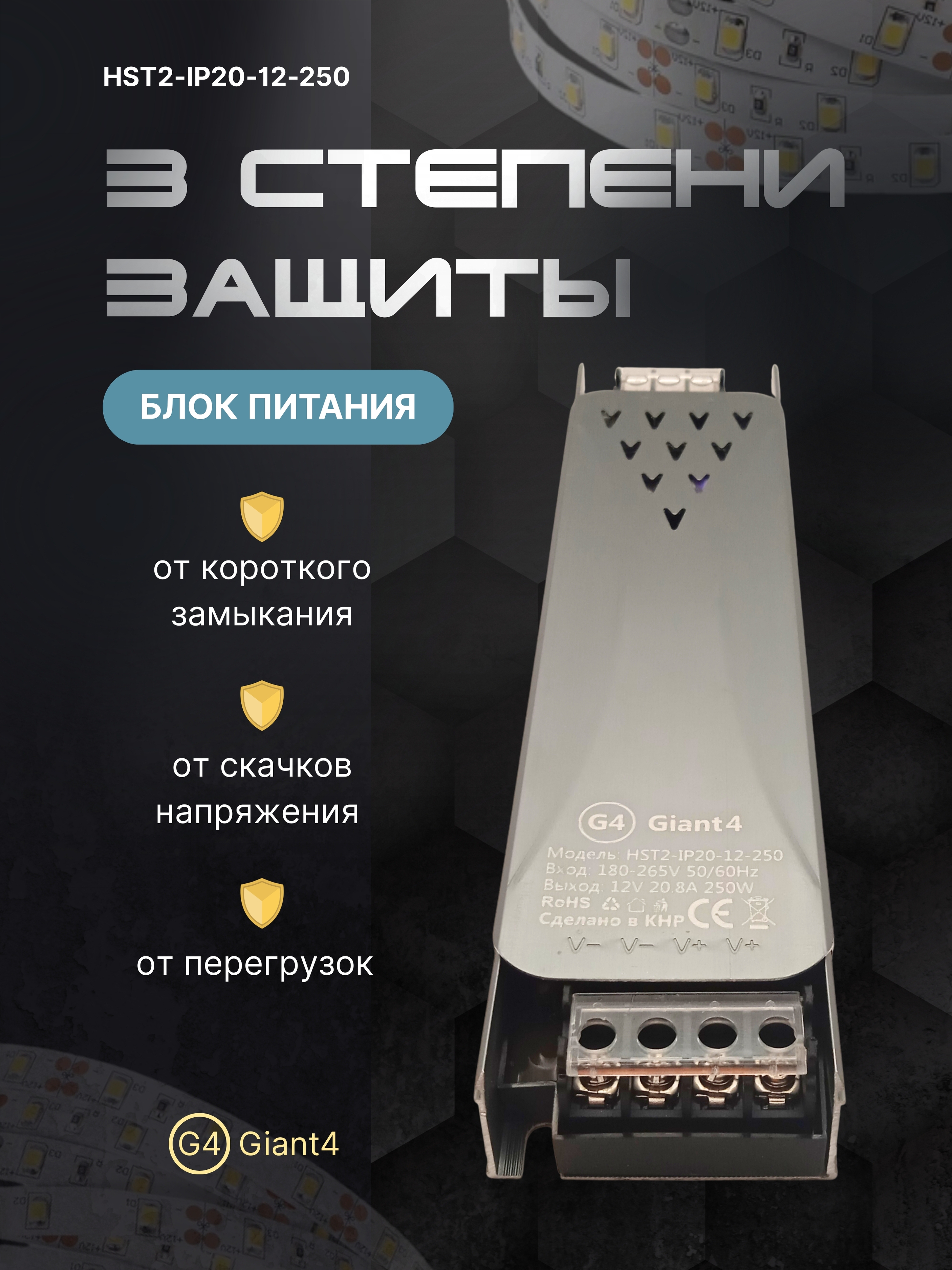 Источник питания для светодиодной ленты 20.8а 250вт 12в ip20