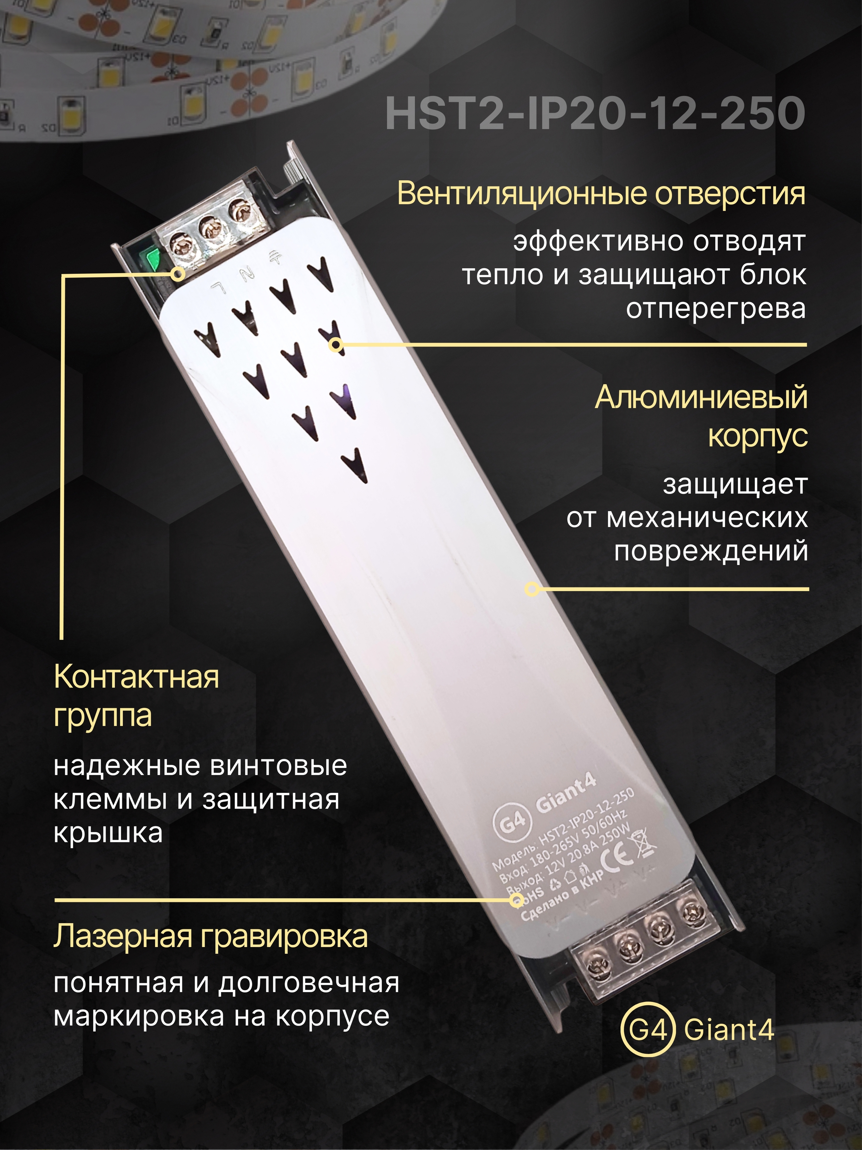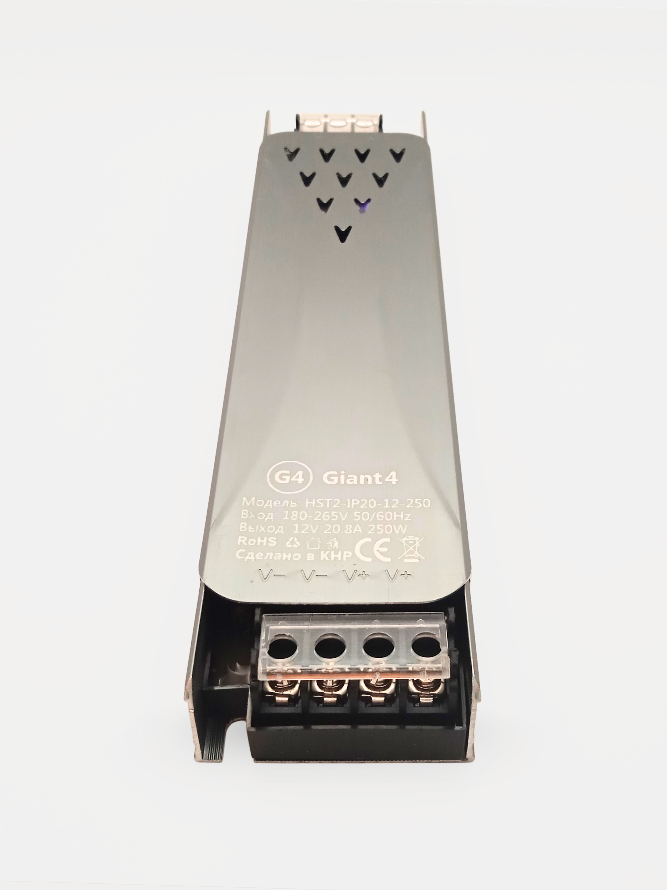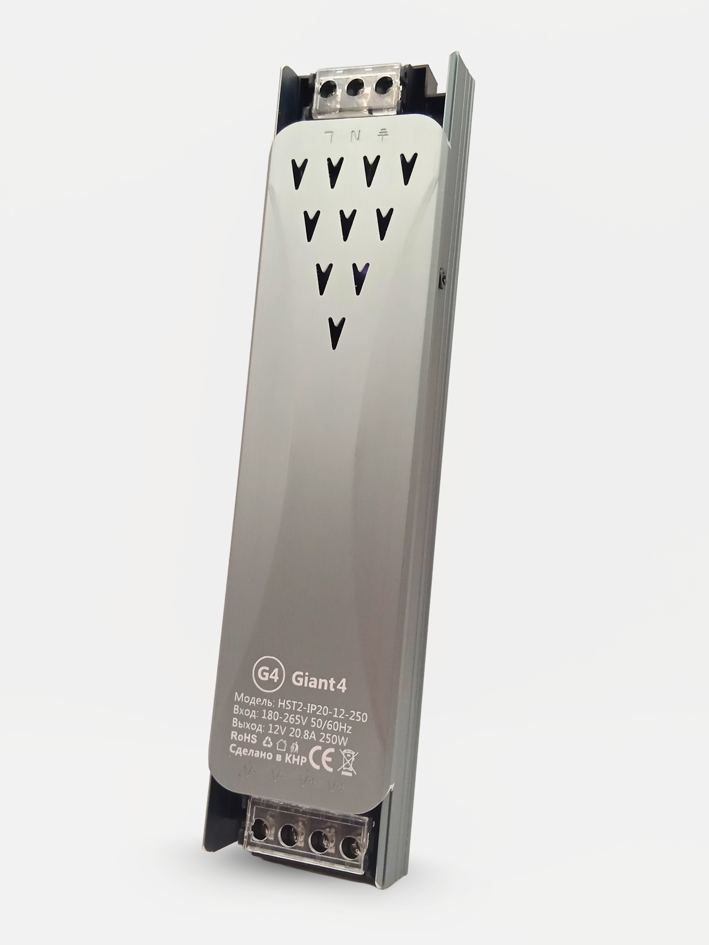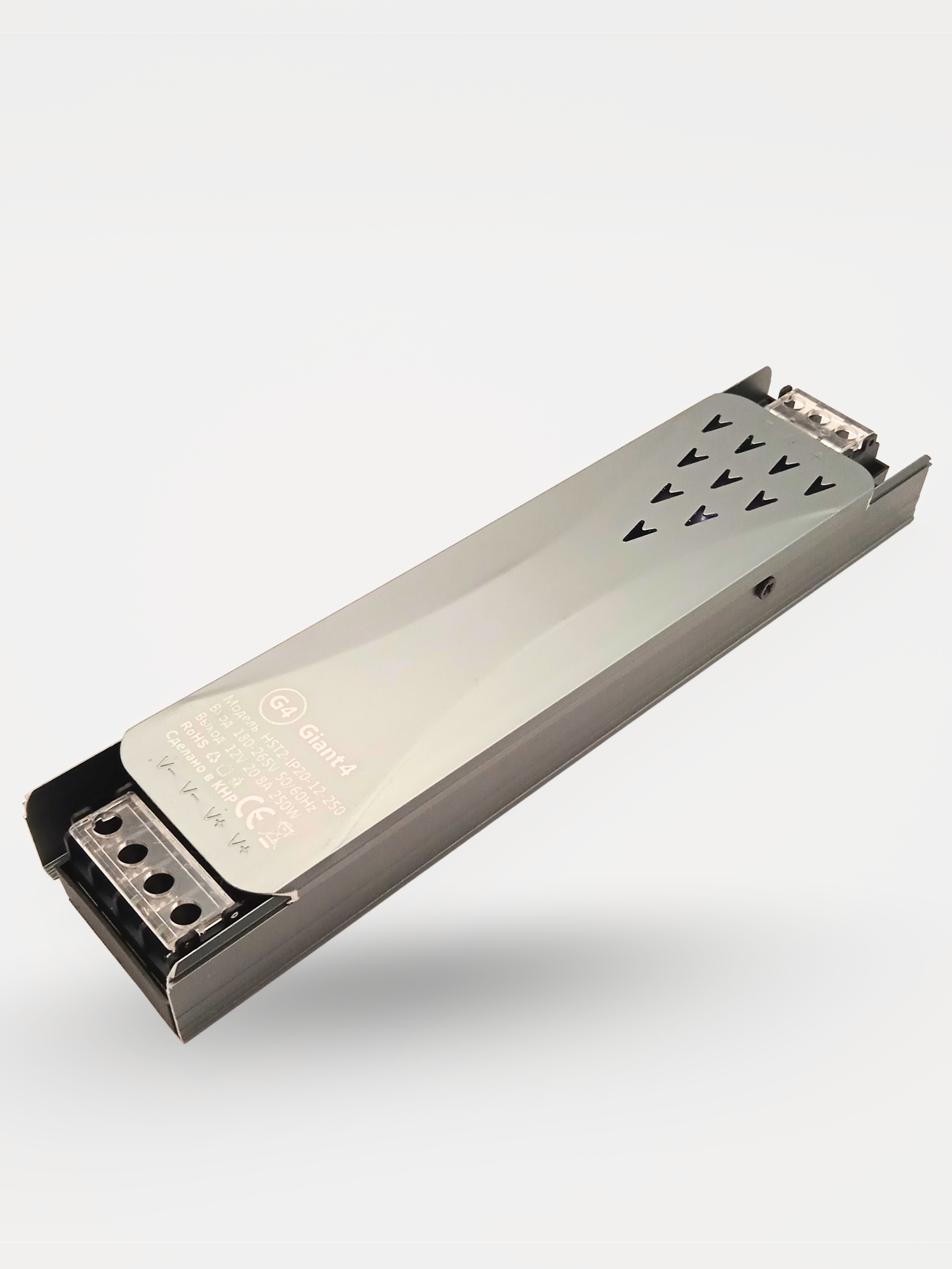 Источник питания для светодиодной ленты 250Вт 12В - узкий и компактный блок питания для светодиодной ленты и другого оборудования, работающего от постоянного напряжения 12V. Корпус сделан из алюминия, который хорошо отводит лишнее тепло, не позволяя блоку питания 250w перегреваться, при этом ему не требуется дополнительное активное охлаждение в виде вентилятора.