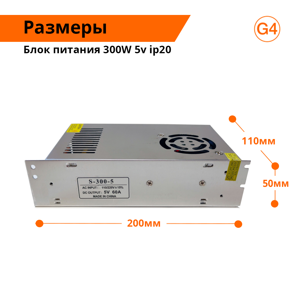 Блок питания для светодиодной ленты 300 Вт 5 В 60А, негерметичный, металлический, гарантия 24 месяца.