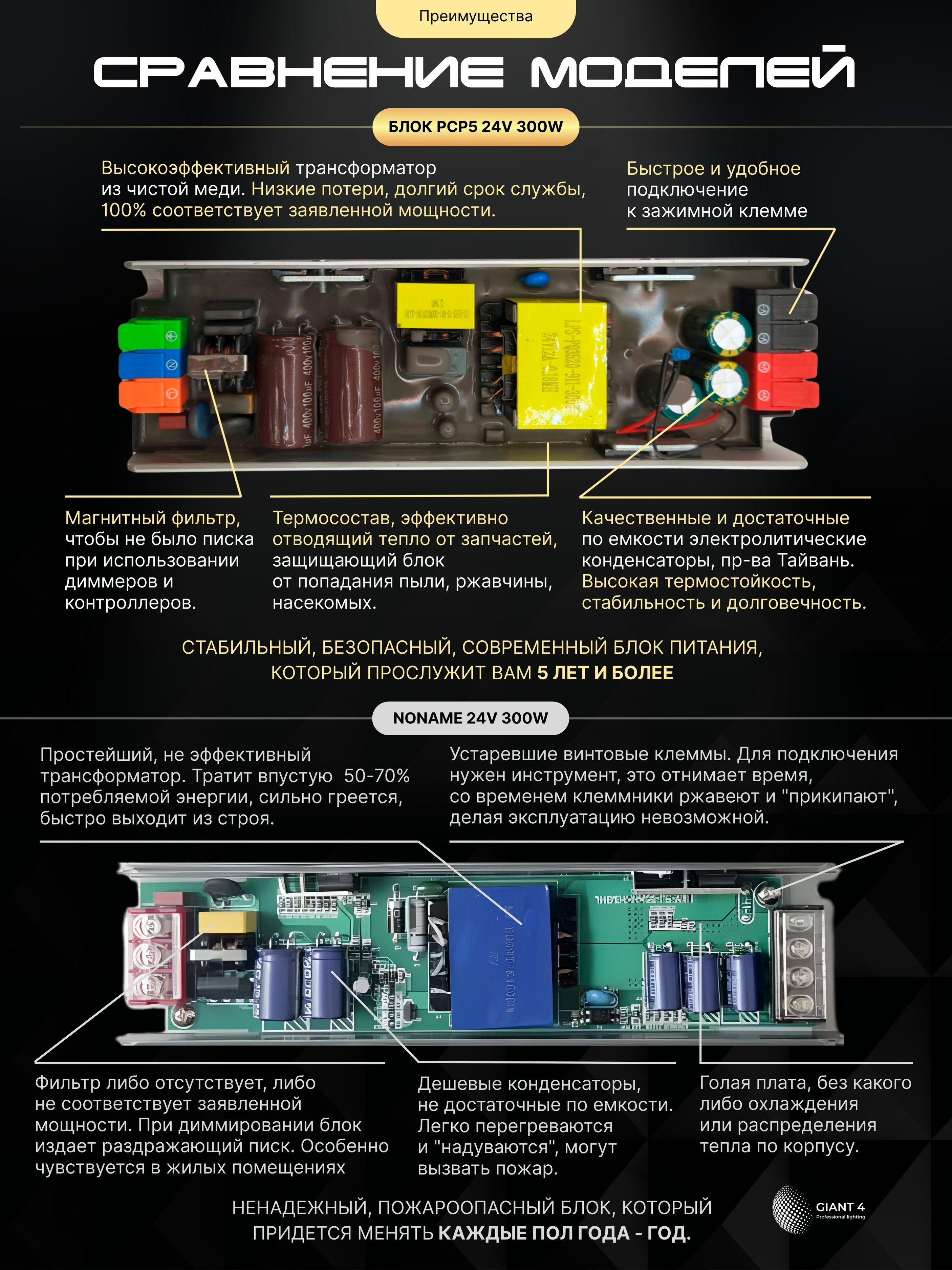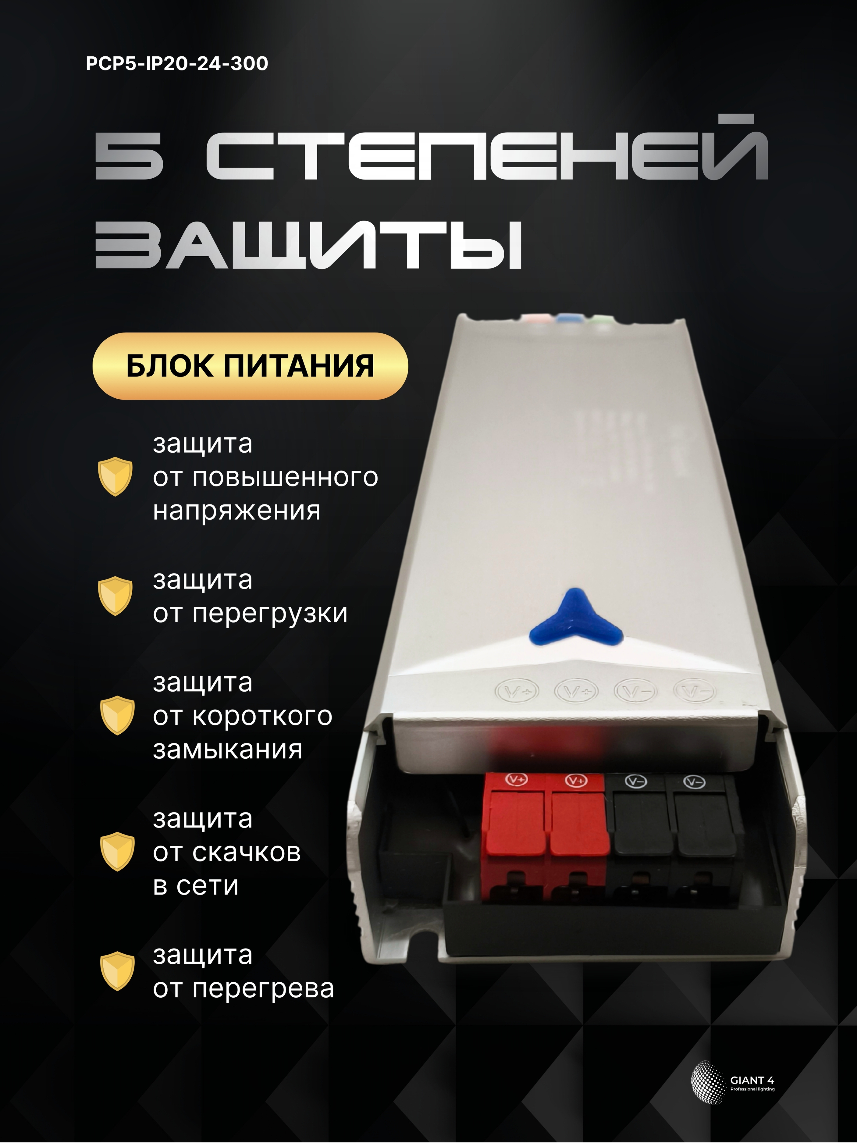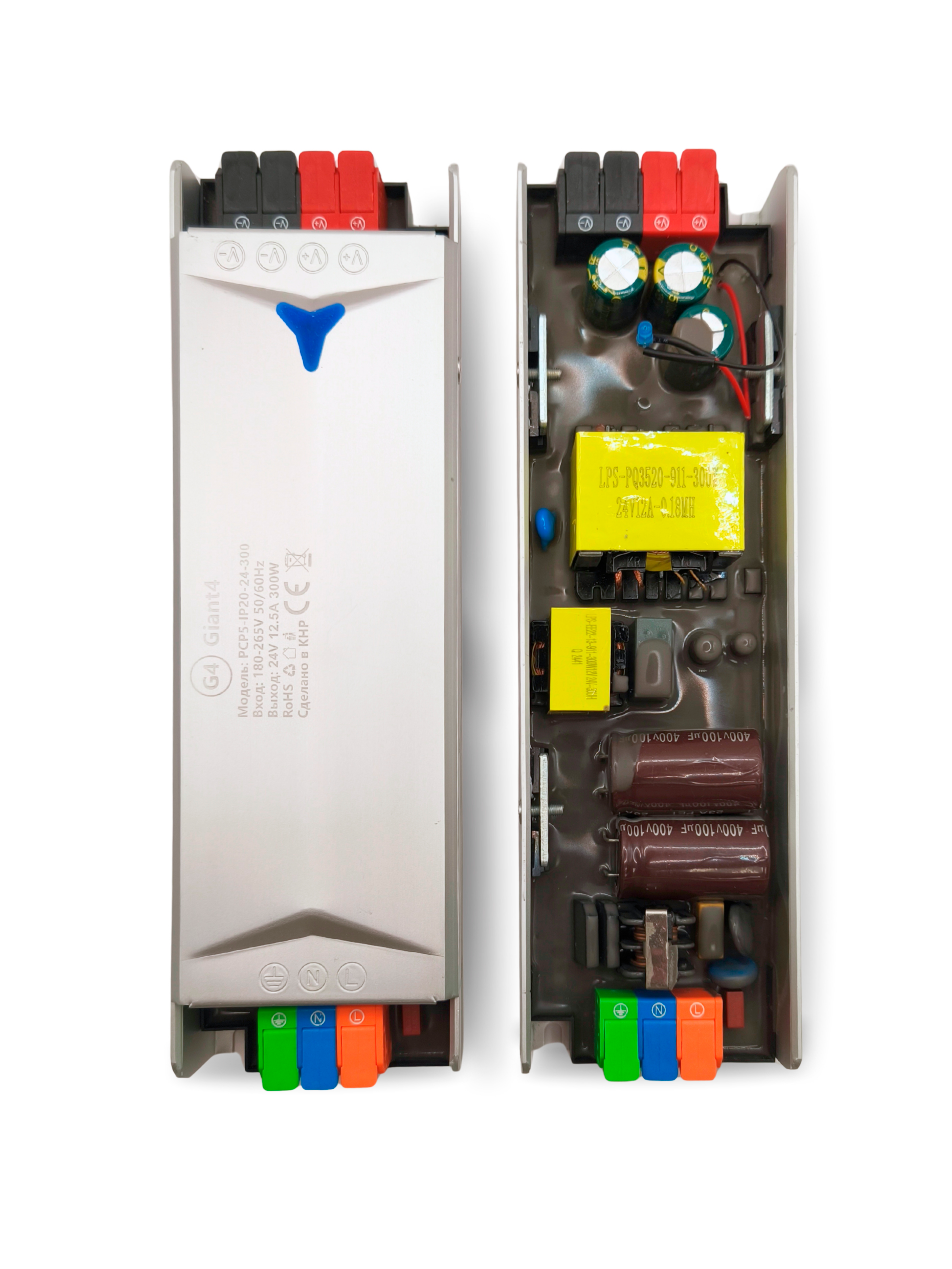 Блок питания 300 Вт 24В поддерживает работу светодиодных лент длиной до 12-15 метров: