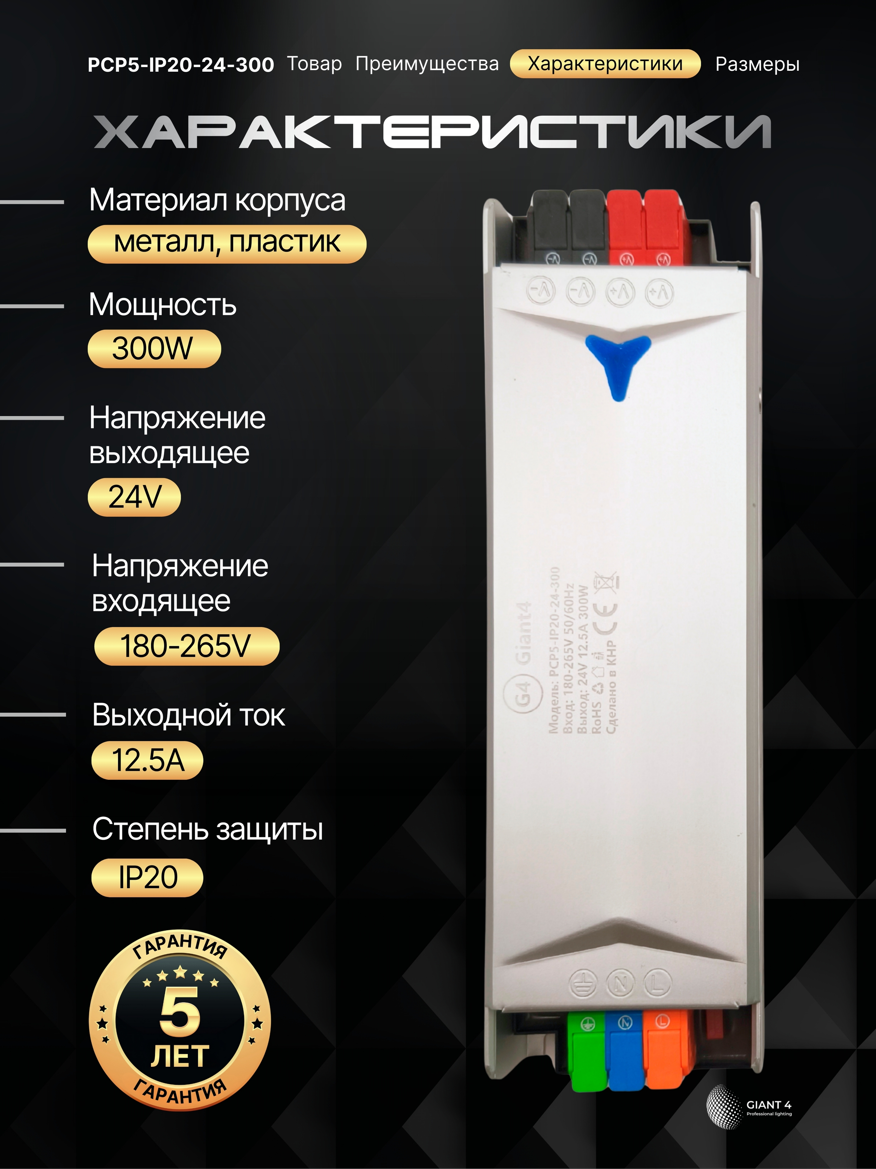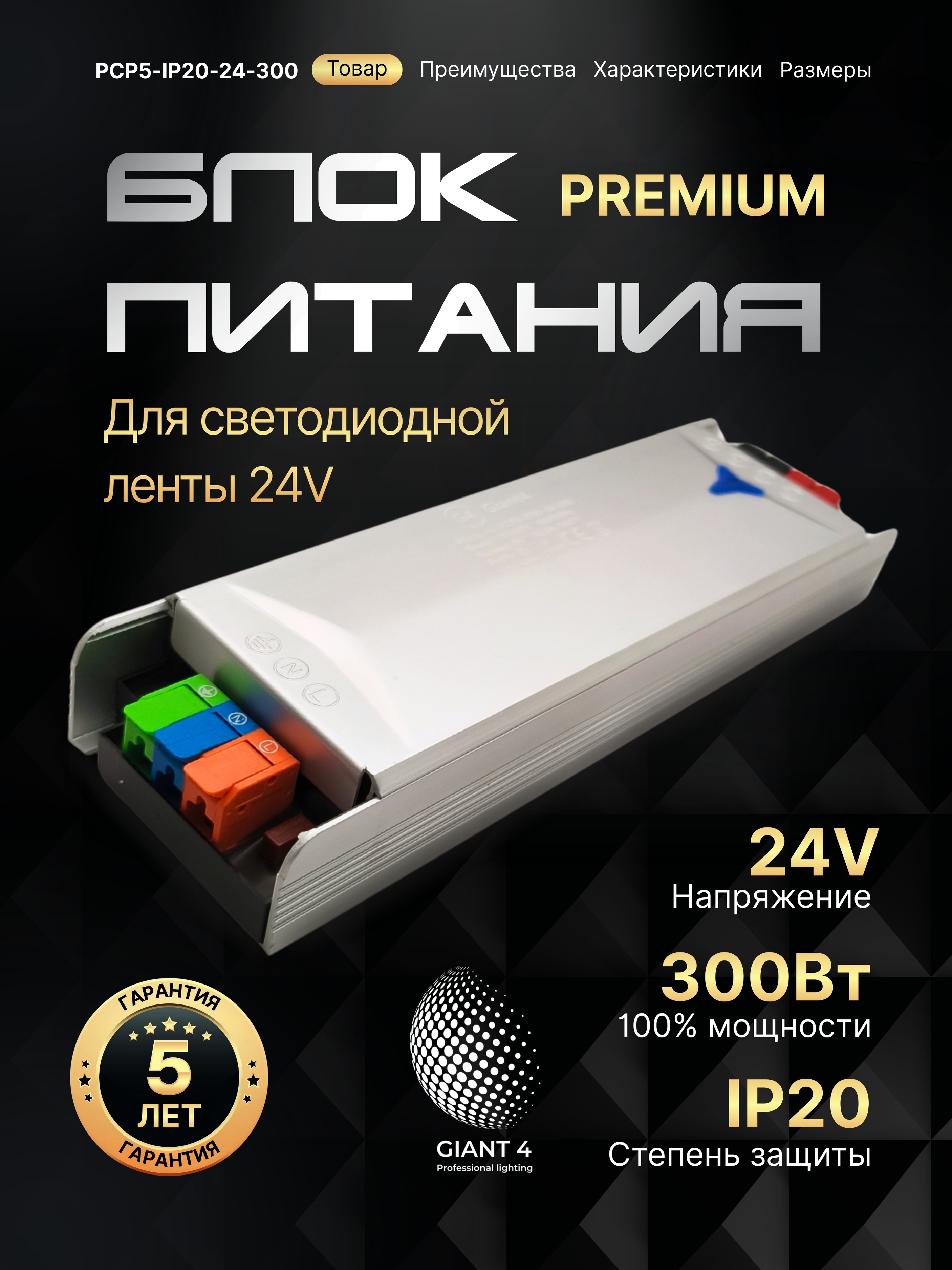 Источник питания 300Вт 24В 12.5А серии Premium разработан для проектов с повышенными требованиями к качеству электропитания. Обеспечивает непрерывную работу на полной номинальной мощности 300Вт с сохранением стабильного напряжения и без перегрева.