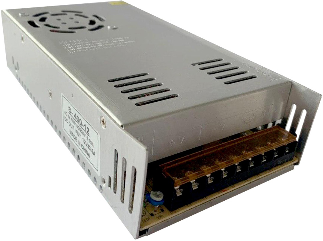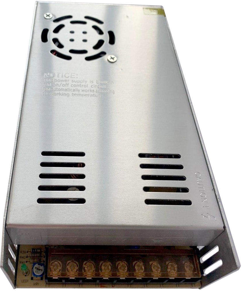 Блок питания (трансформатор) для светодиодной ленты на 400 Вт 33 А. Достаточно мощный чтобы подключить 69 метров ленты 2835 60led или 23 метра ленты 5050 60led. Следует учитывать, что этот блок питания, оснащен куллером (вентилятором) для охлаждения. Это приводит к тому, что при работе он гудит. Шум примерно такой же, как от работающего ноутбука. Если вам нужен бесшумный блок, рассмотрите другие варианты, например: блоки питания 200 или 250 ватт, также есть узкий Premium блок на 300Вт. Их можно объединить в цепь, получив в сумме нужную мощность.