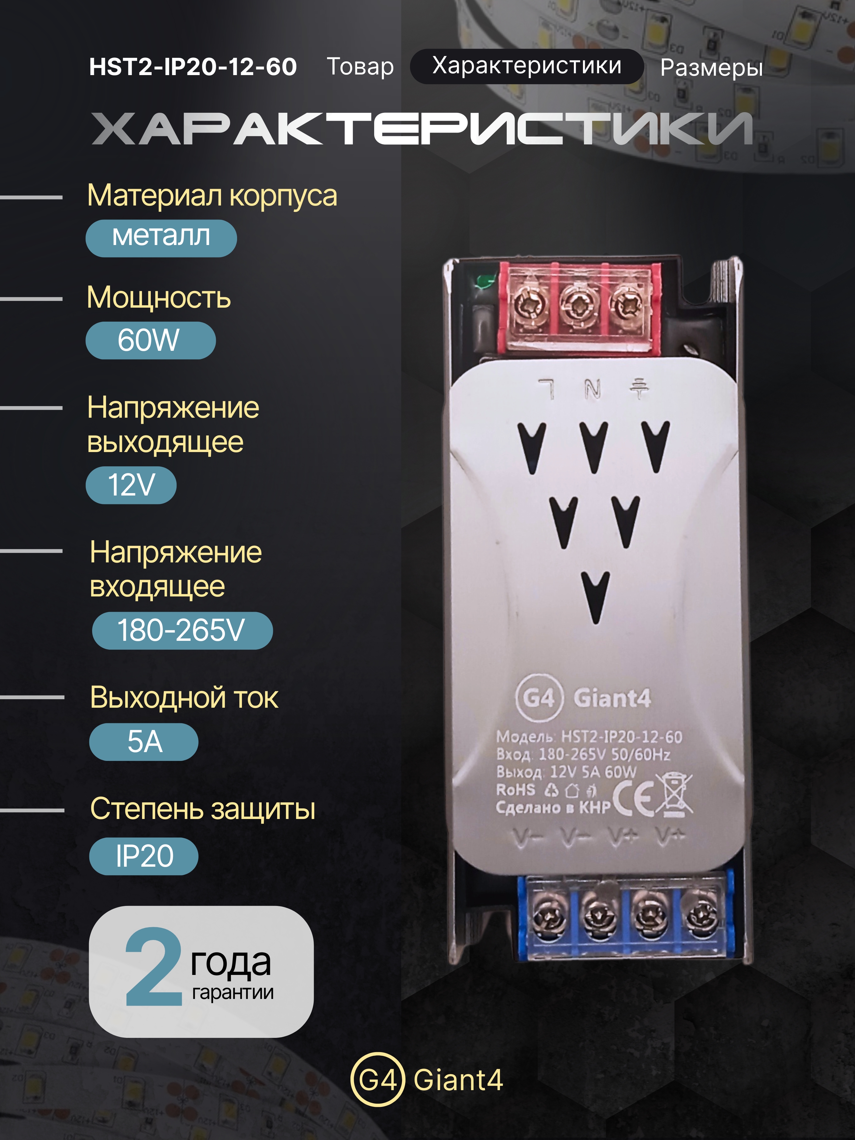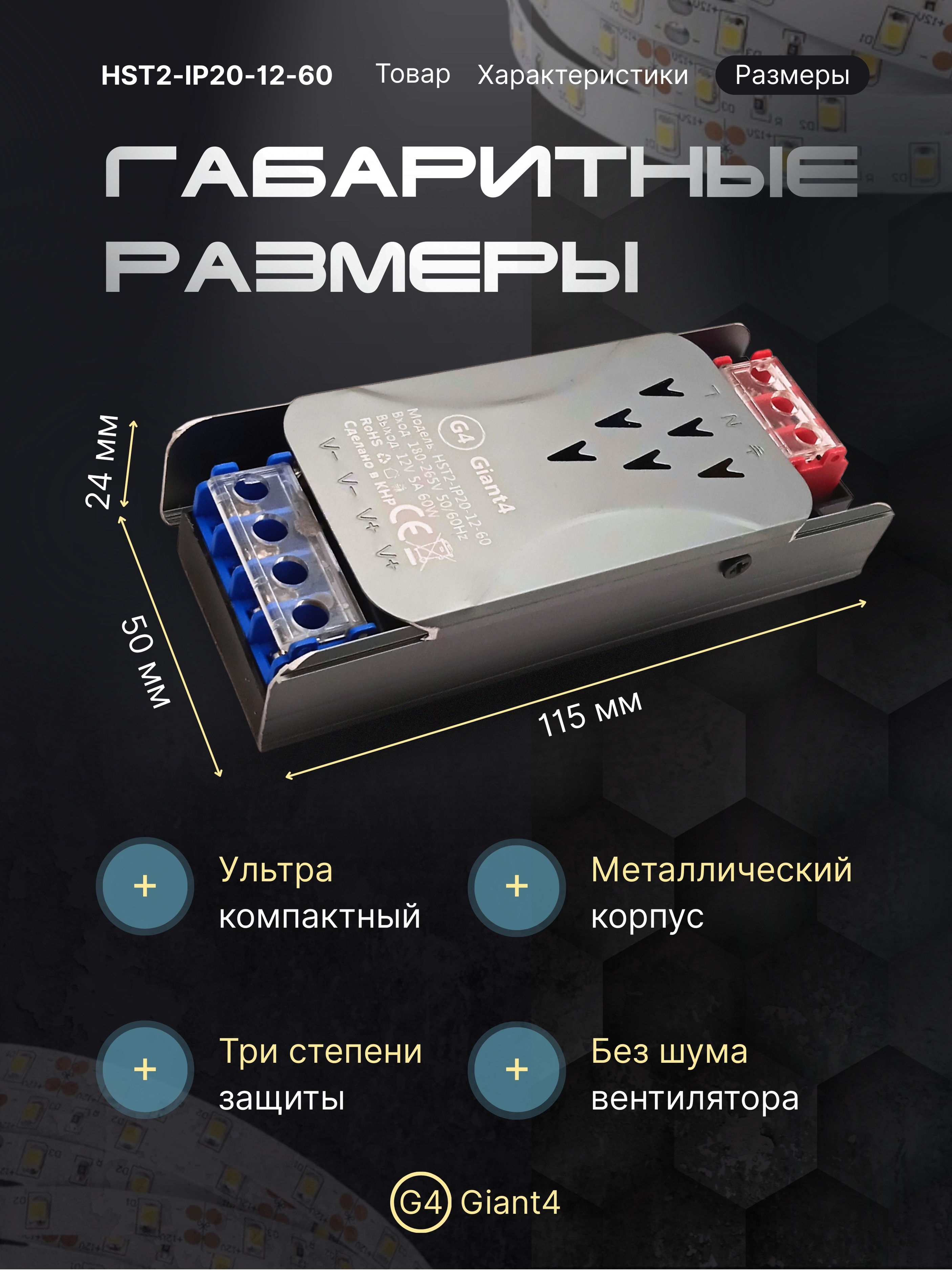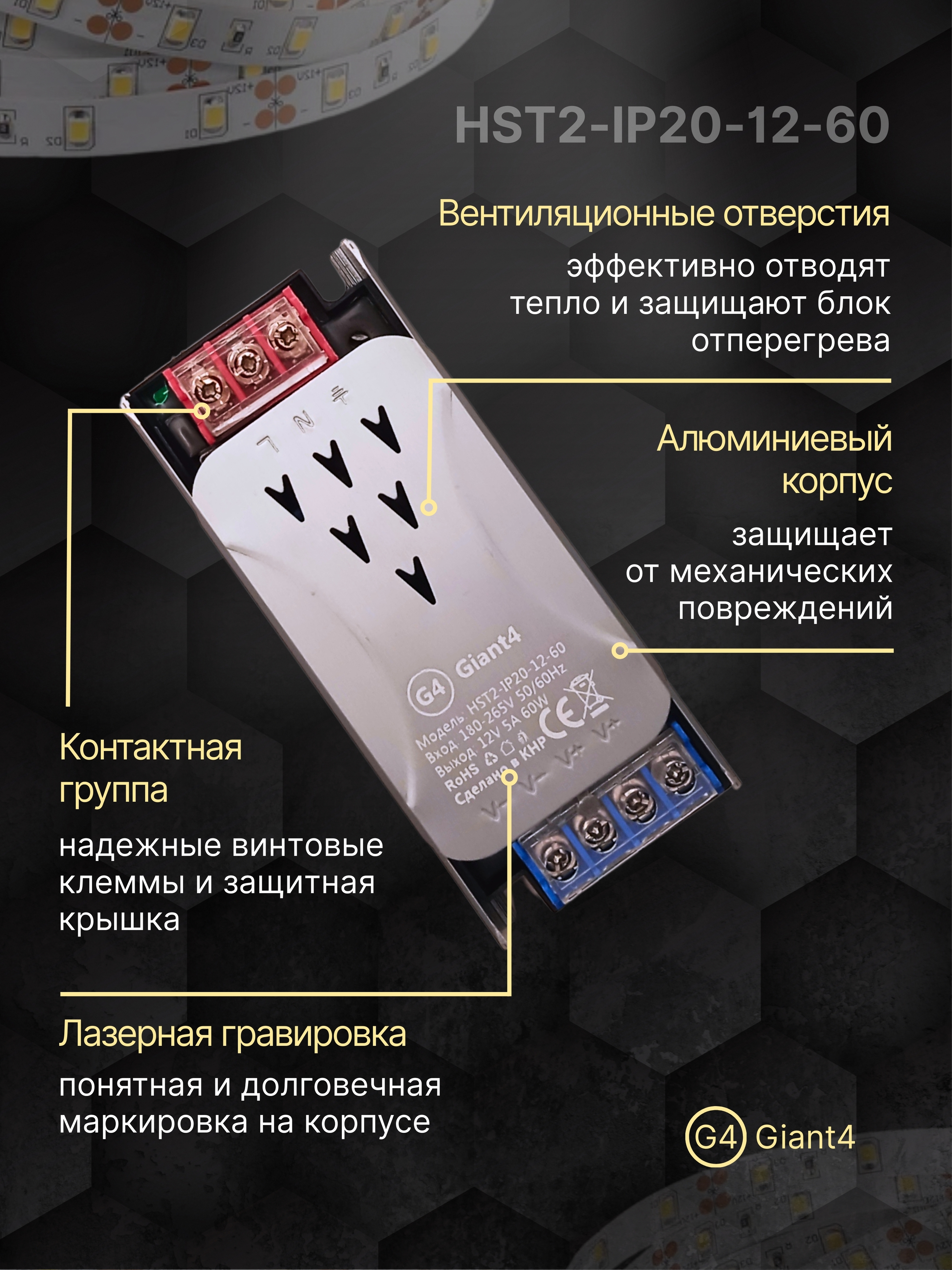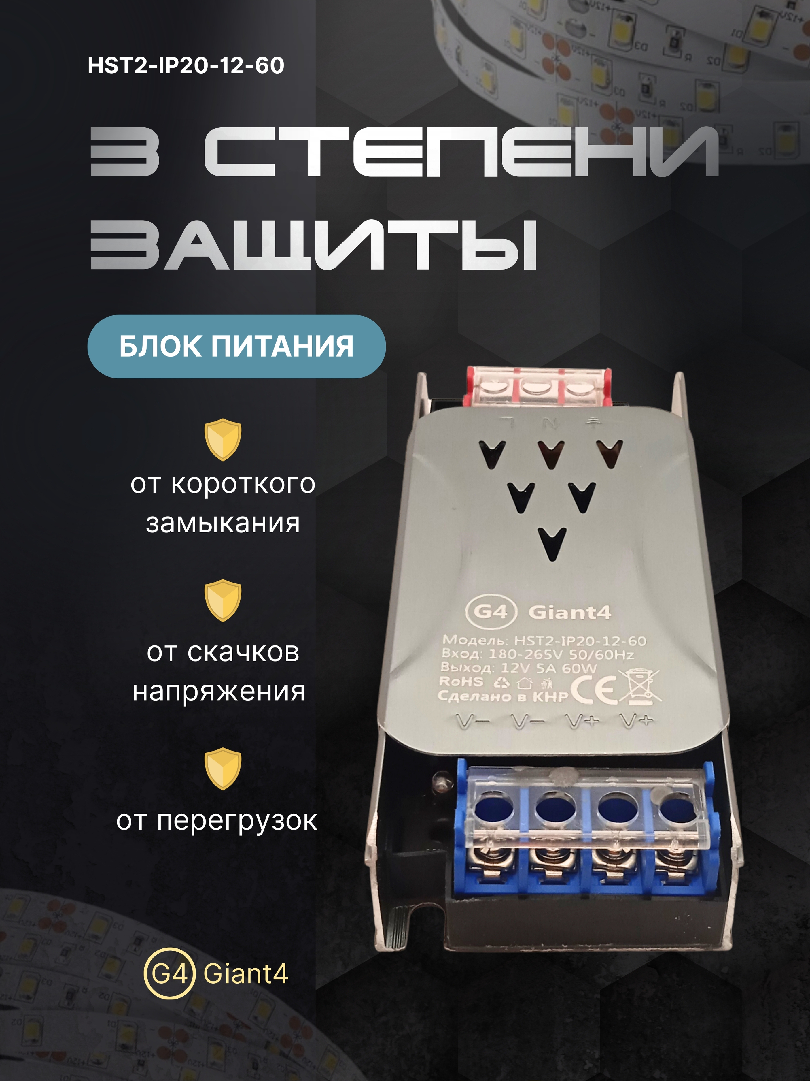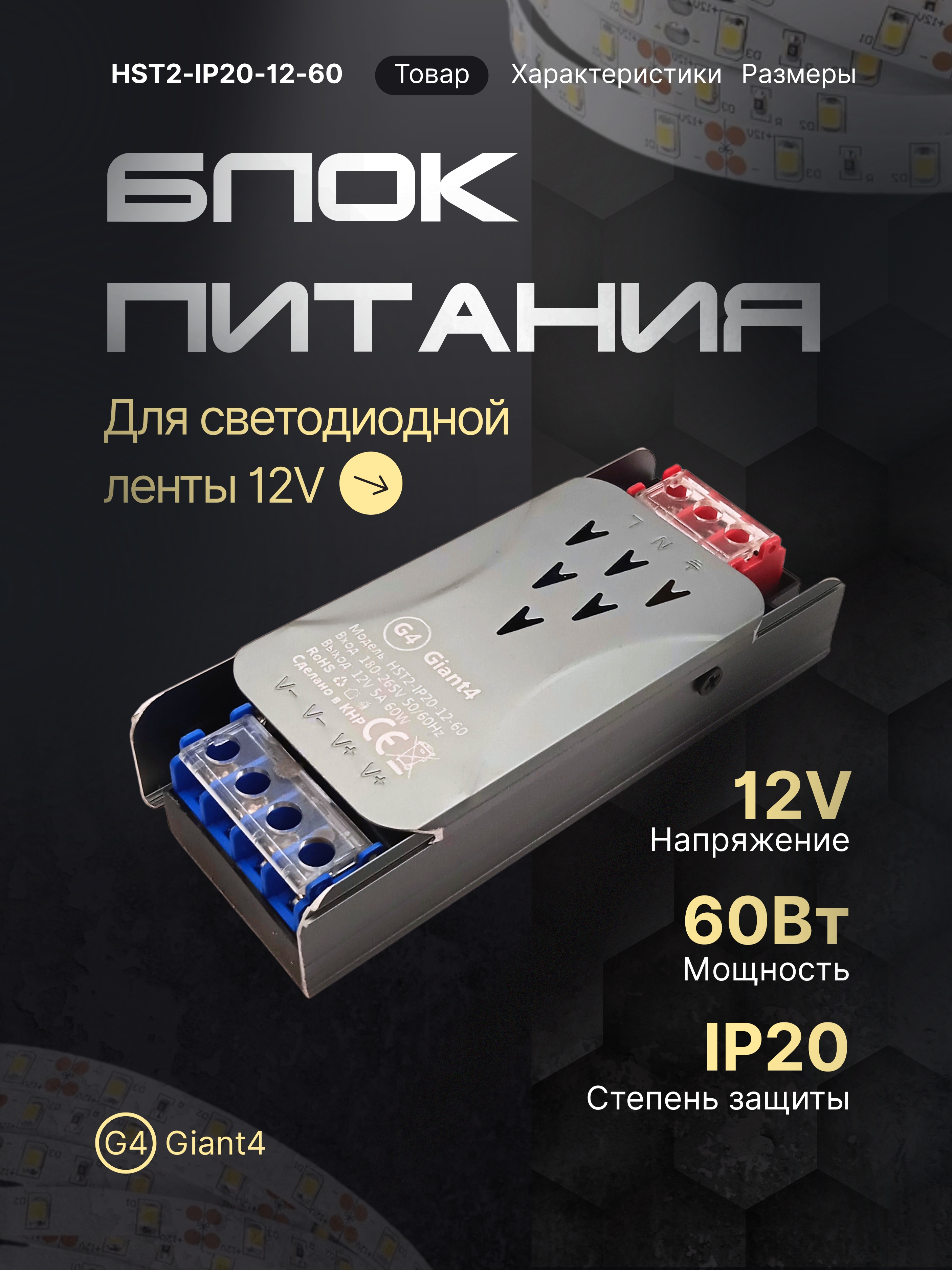 Закажите надежный блок питания 60W 12V на Giant4.ru — лучшее соотношение цены и мощности для вашего дома!