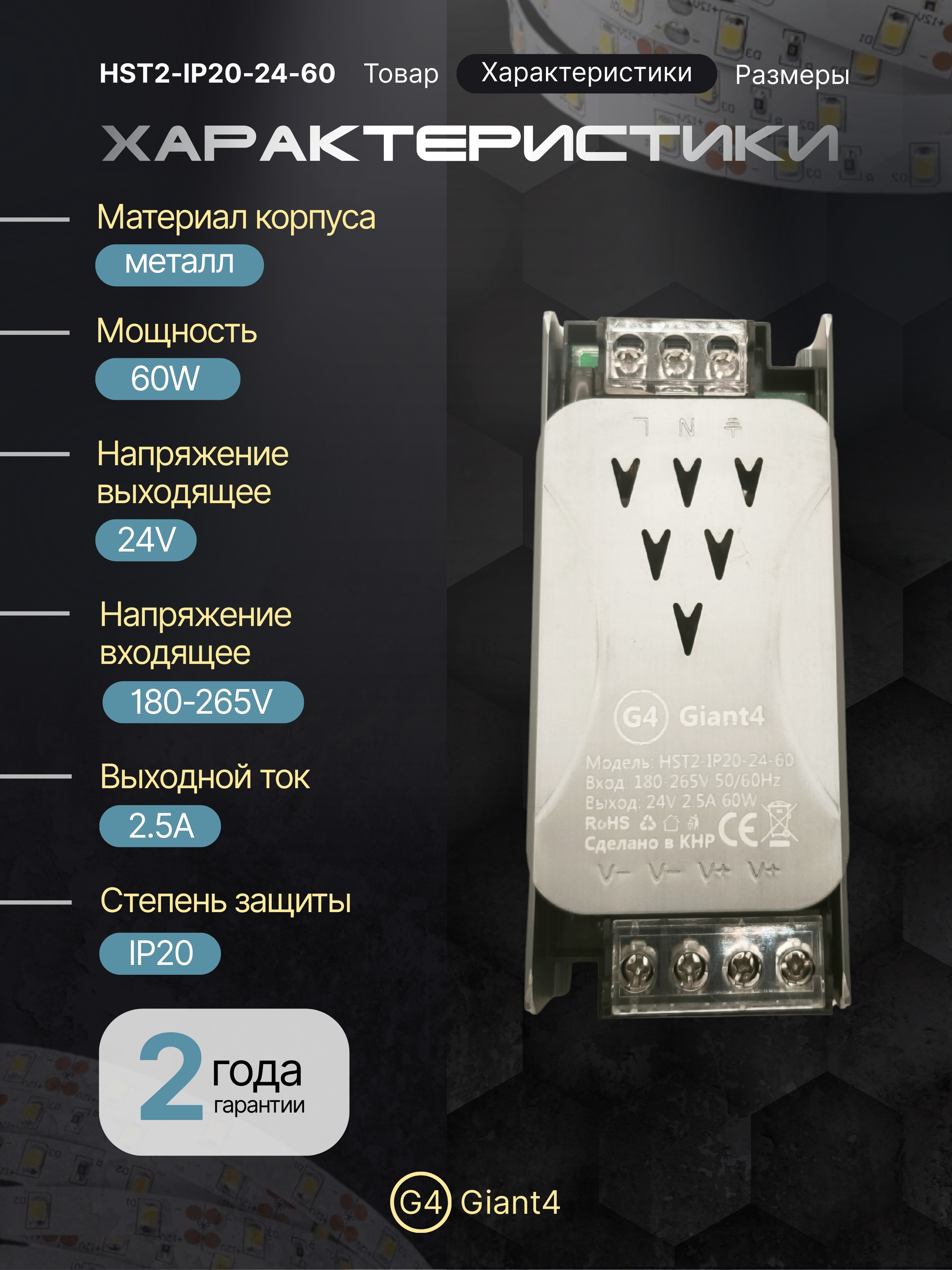 Блок питания для светодиодной ленты 24v 60w 2.5a