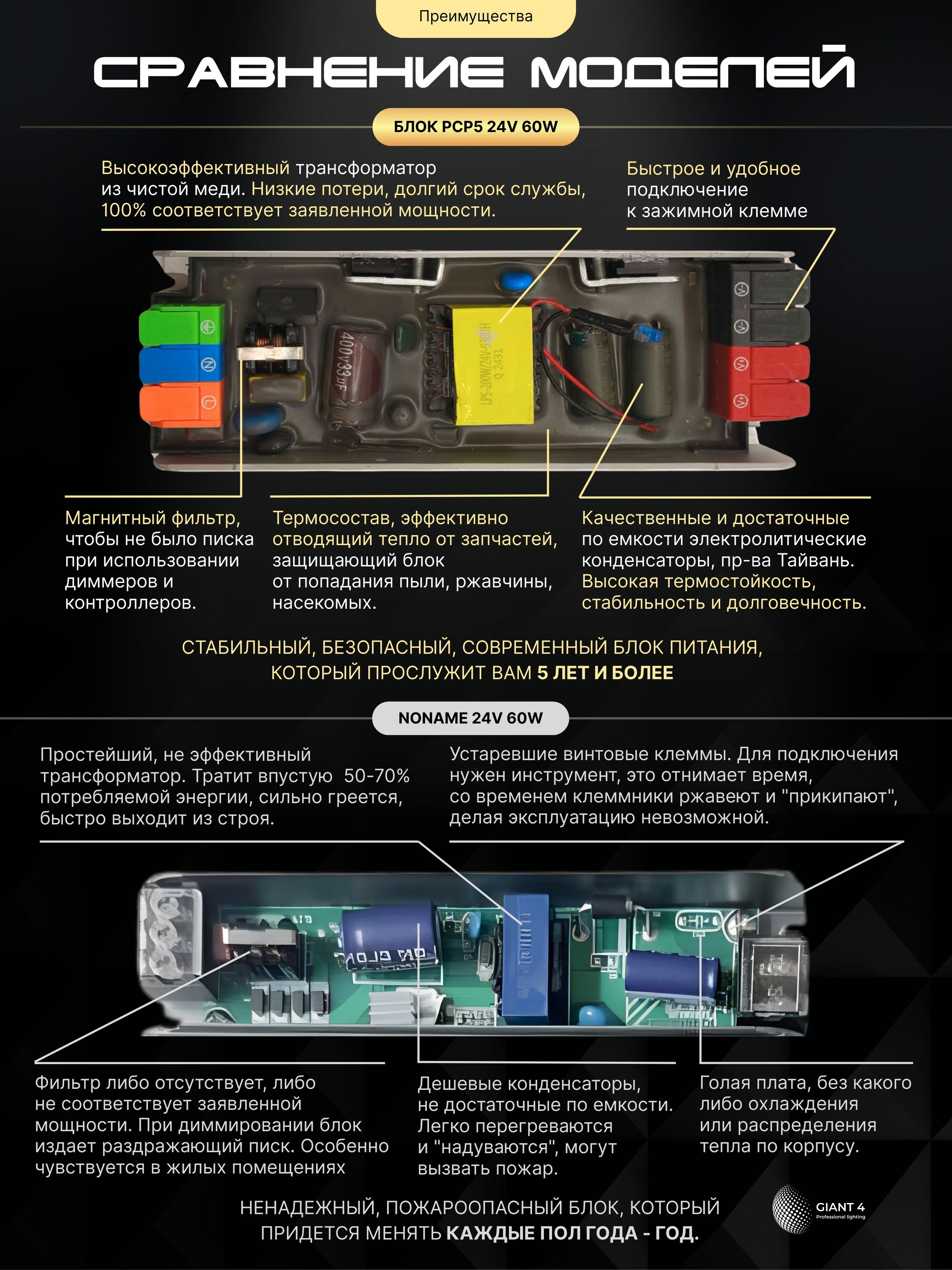 - 5 лет гарантии;