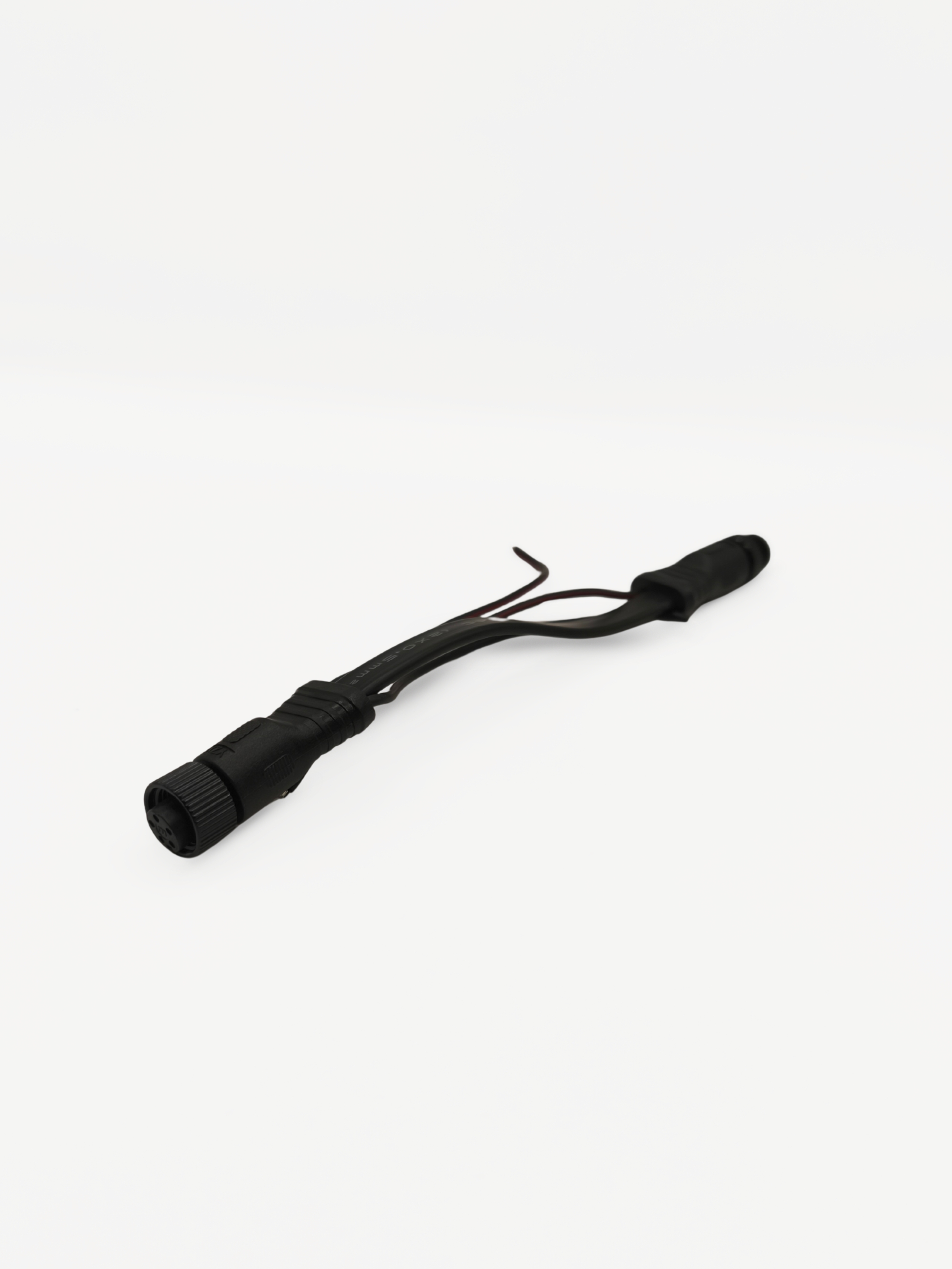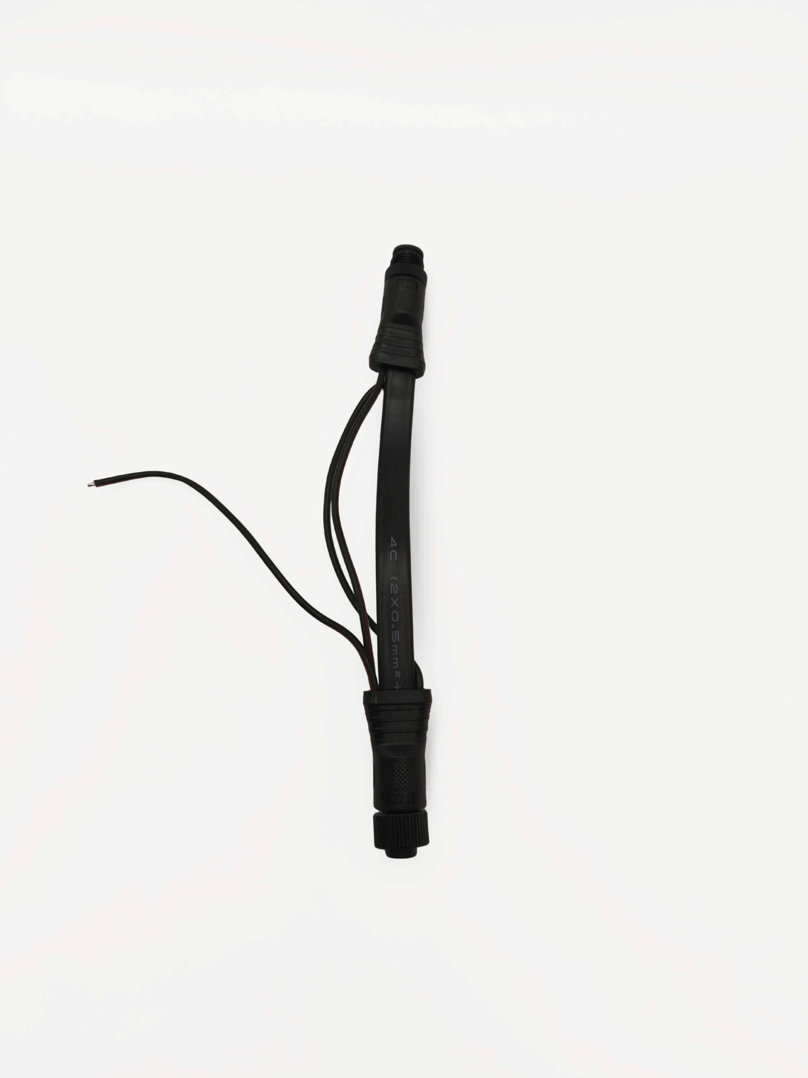Коннектор имеет провода, один красный, один чёрный. Красный подключается к плюсу питания, черный к минусу.