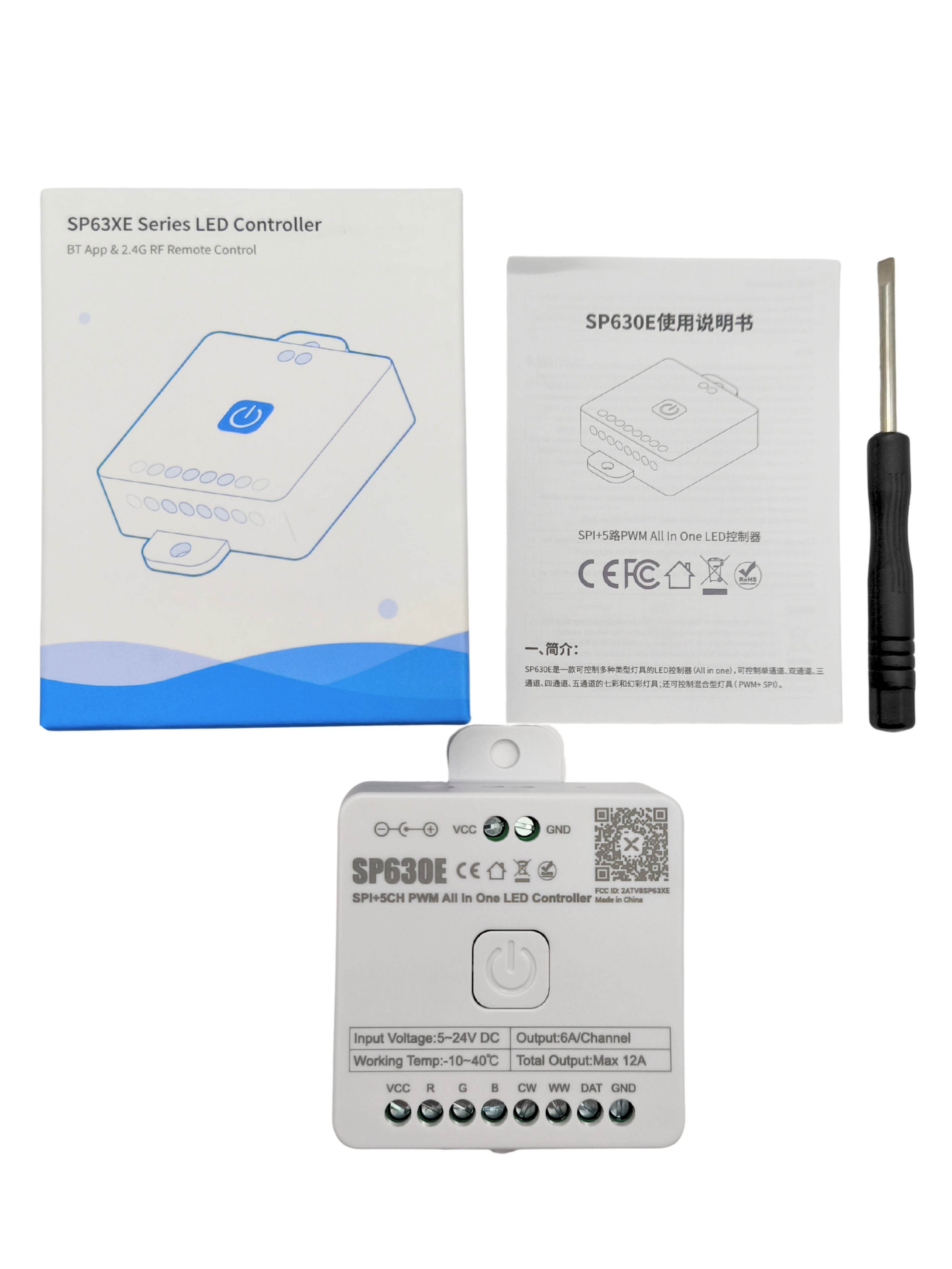 Контроллер универсальный для адресной ленты SP630e с приложением 3 в 1 (один цвет, CCT, RGB)