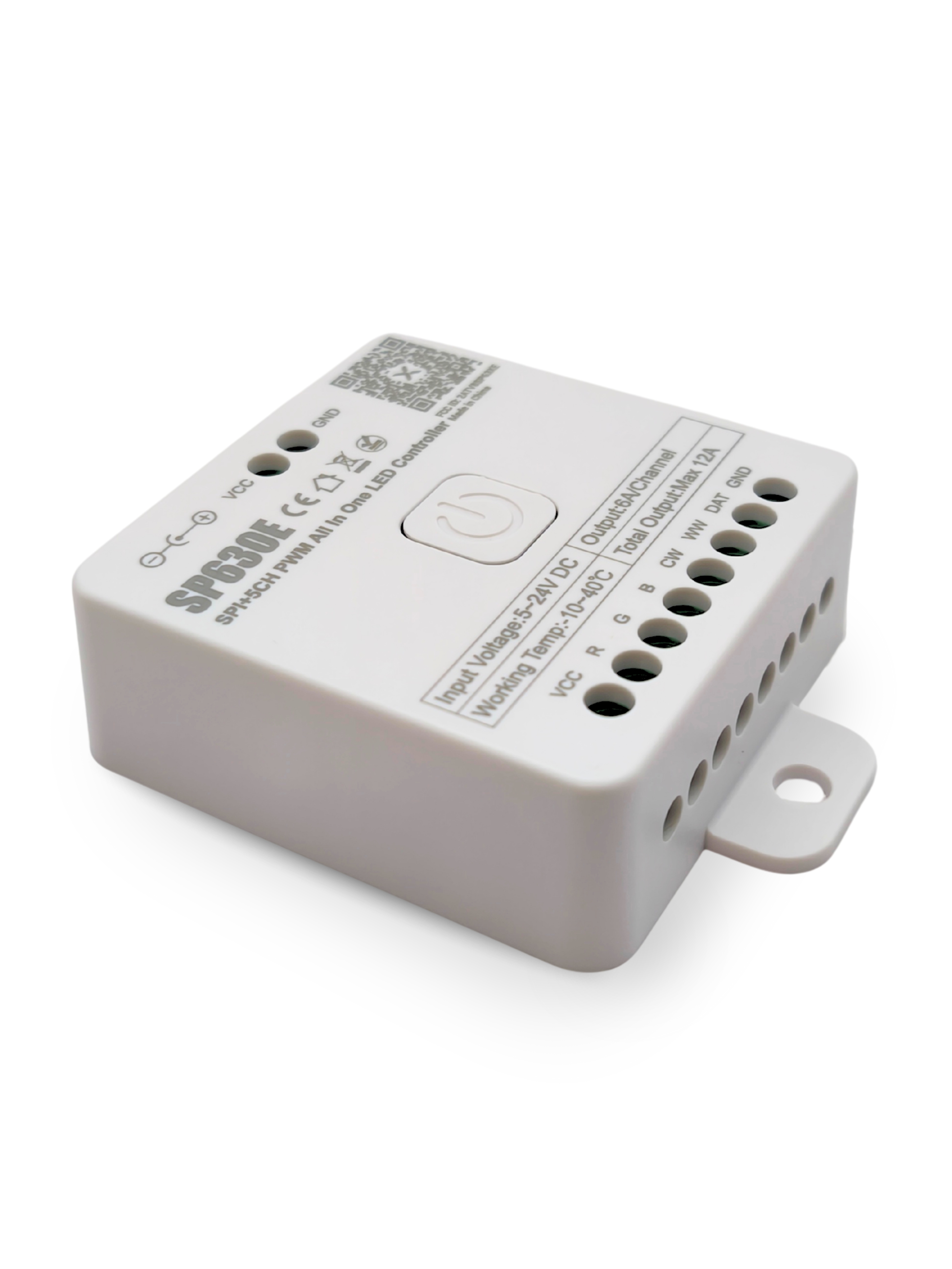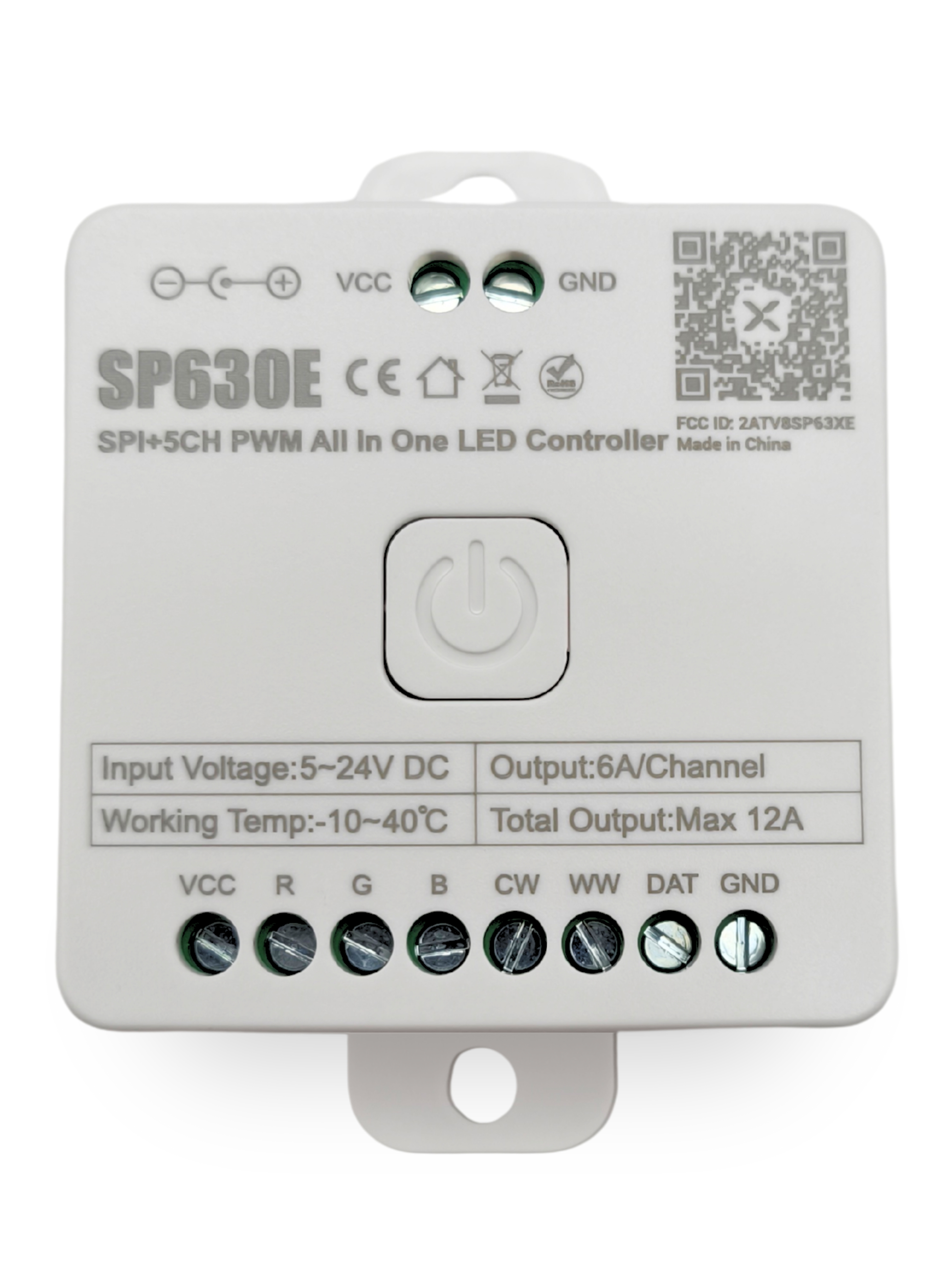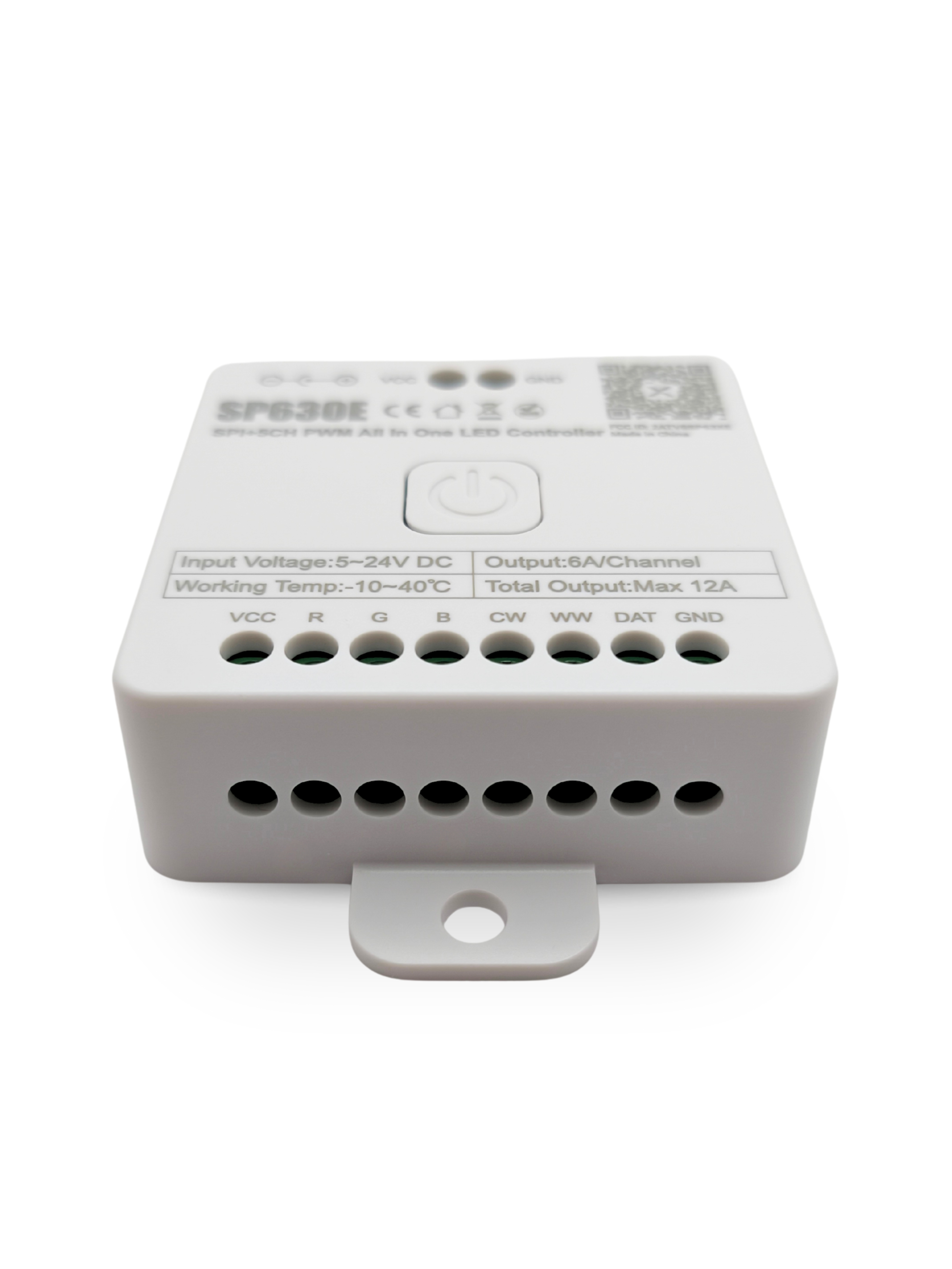 SP630E — это флагманская модель нового поколения, которая объединяет в себе возможности сразу двух типов устройств. Это первое массовое решение, позволяющее управлять как классическими аналоговыми лентами (PWM), так и «бегущими» адресными лентами (SPI) через один интерфейс.