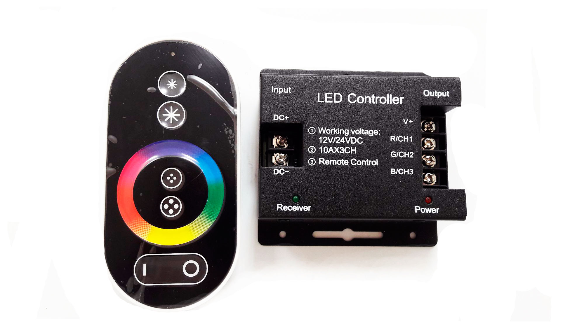 Сенсорный RGB контроллер для светодиодной RGB ленты 18А 216Вт предназначен для создания яркой разноцветной подсветки внутри помещений. Он достаточно мощный для управления сразу 15 метрами RGB ленты 60led/м или 7 метрами - 120led/м. Кроме того, мощность можно нарастить при помощи усилителей. Благодаря этому его часто применяют профессионалы в натяжных потолках с подсветкой или в других проектах, где требуется подключить большое количество светодиодной ленты.