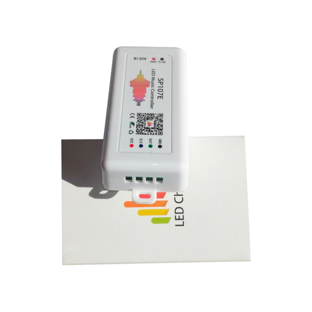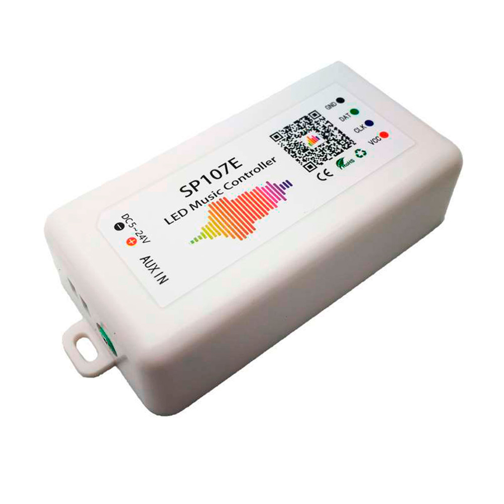 Музыкальный Bluetooth контроллер SP107e c приложением для адресной светодиодной ленты. Контроллер рассчитан работу с напряжением 5-24V. По - сути это значит, что к нему можно подключить любую адресную ленту из нашего магазина, важно только учитывать, что максимально он поддерживает до 960 пикселей (до 16 метров ленты ws2812b/ws2813 60led или до 48 метров 2818 60led). Если указанной длины ленты вам недостаточно - рекомендуем использовать музыкальный контроллер с SPI / DMX усилителем сигнала SP901e. Он позволит увеличить максимальное число пикселей в 4-8 раз в зависимости от чипа используемой адресной ленты.