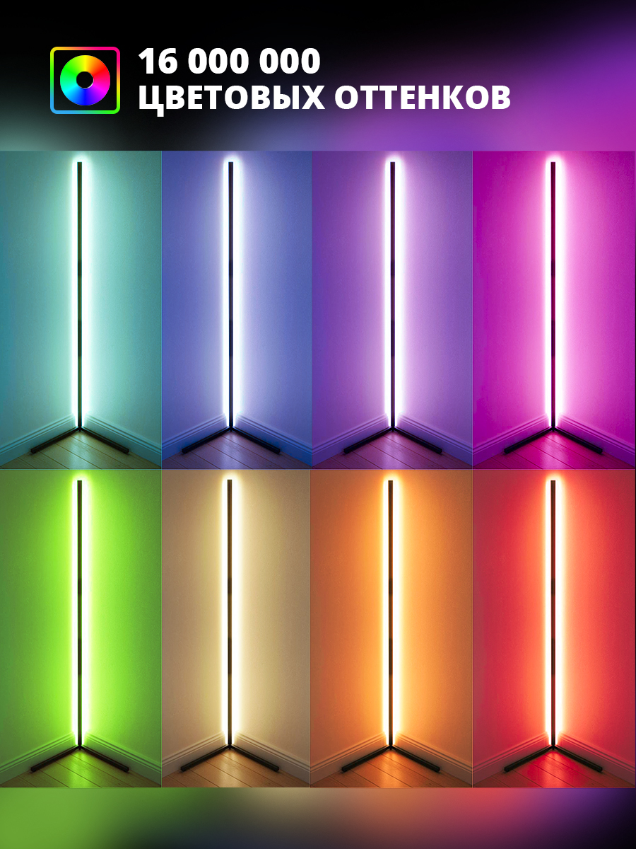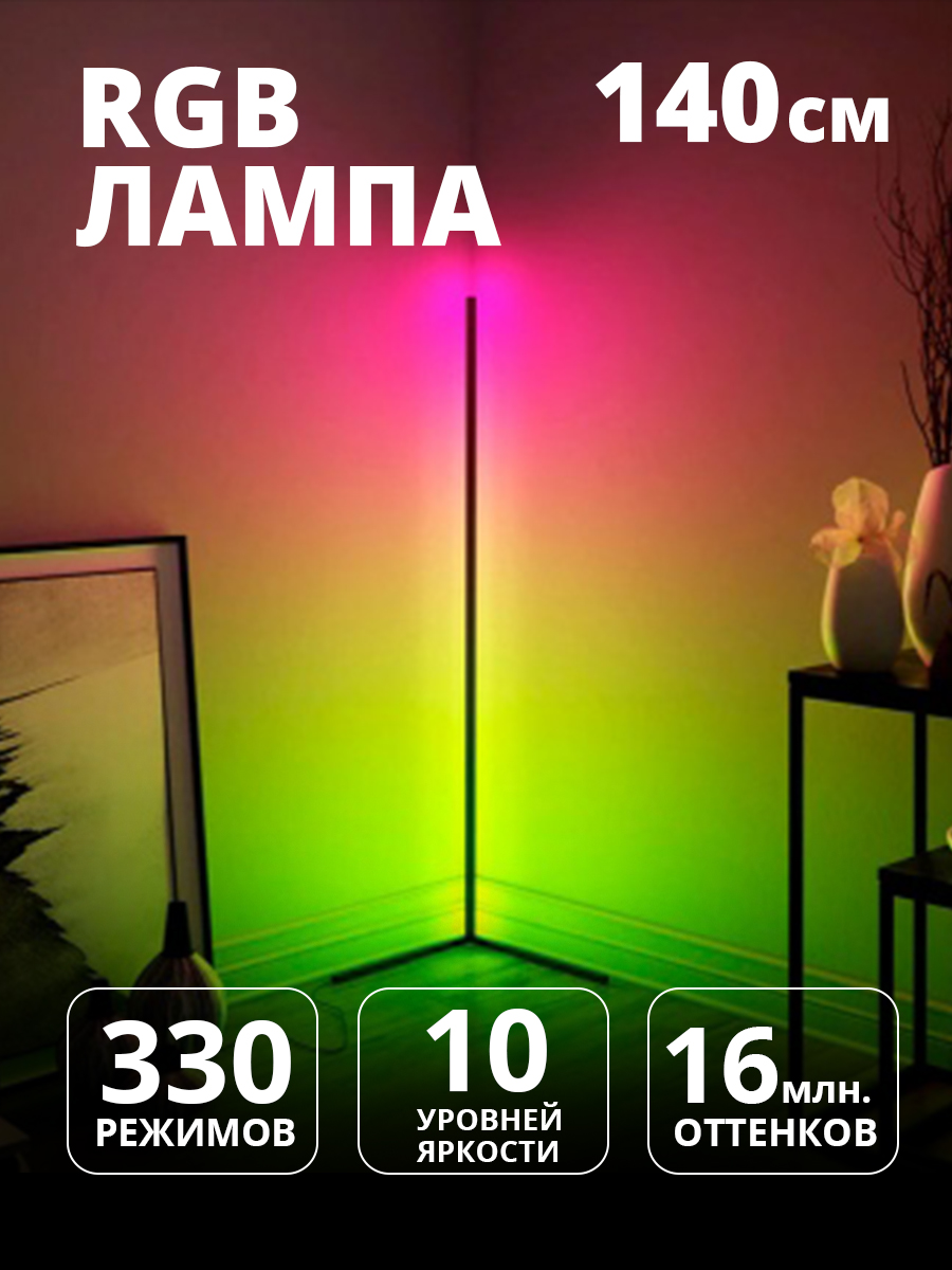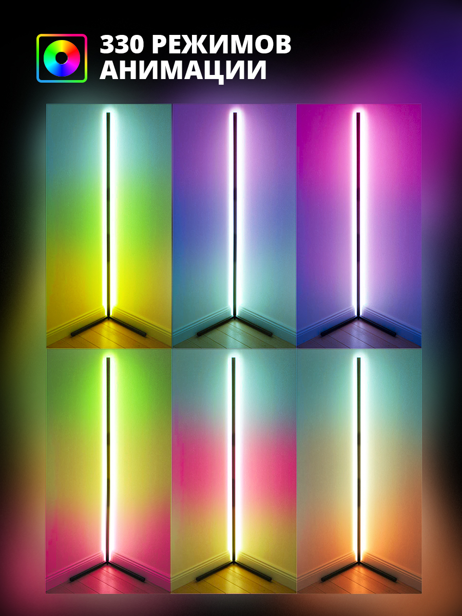 Угловая напольная лампа Nordic RGB с пультом управления. 330 режимов. Высота 1.4 метра. Гарантия 2 года