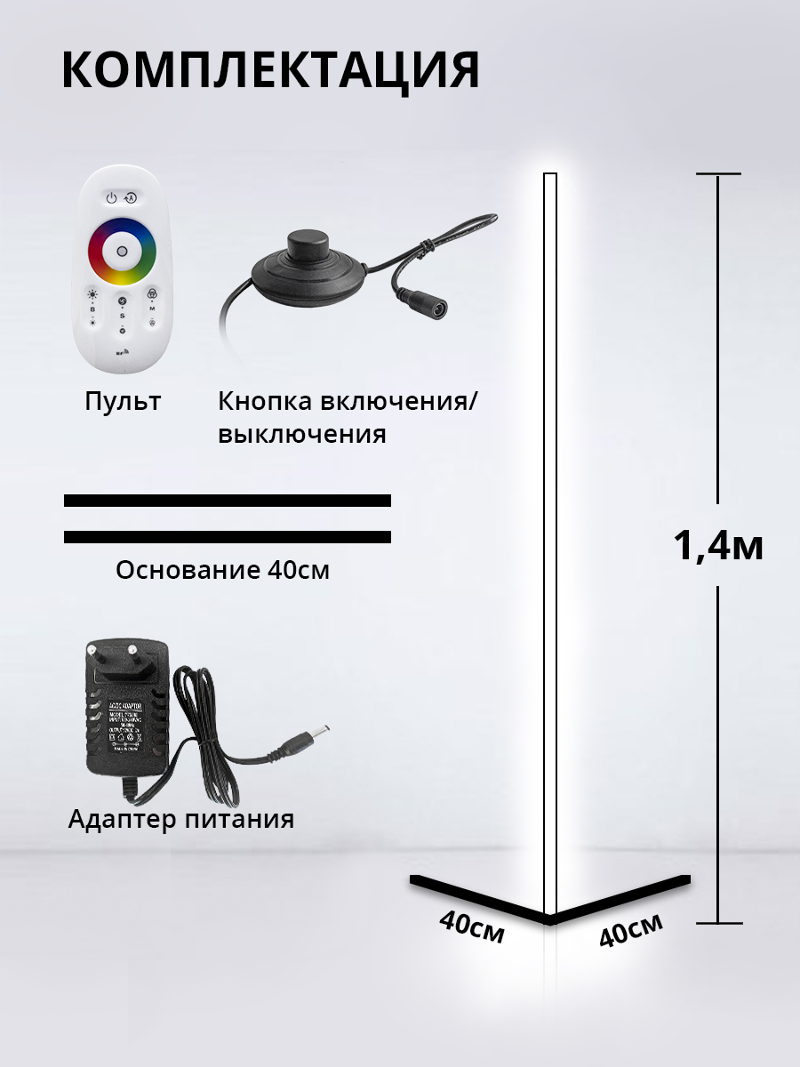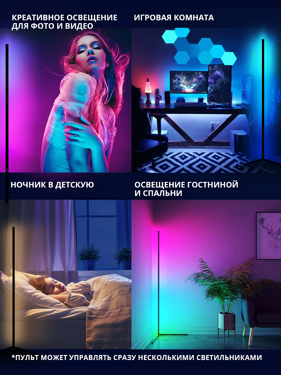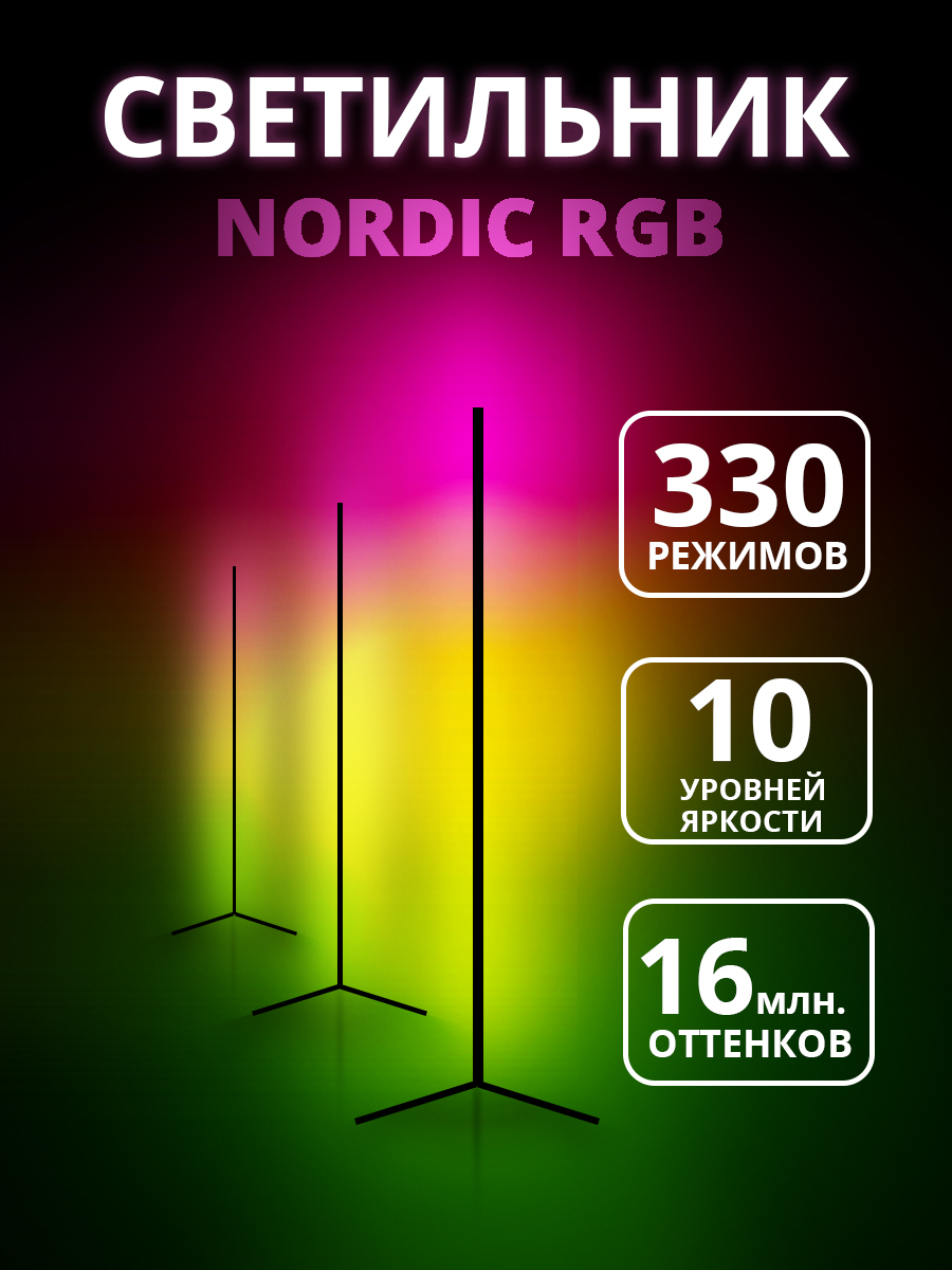 Угловая напольная лампа Nordic RGB с пультом управления. 330 режимов. Высота 1.4 метра. Гарантия 2 года