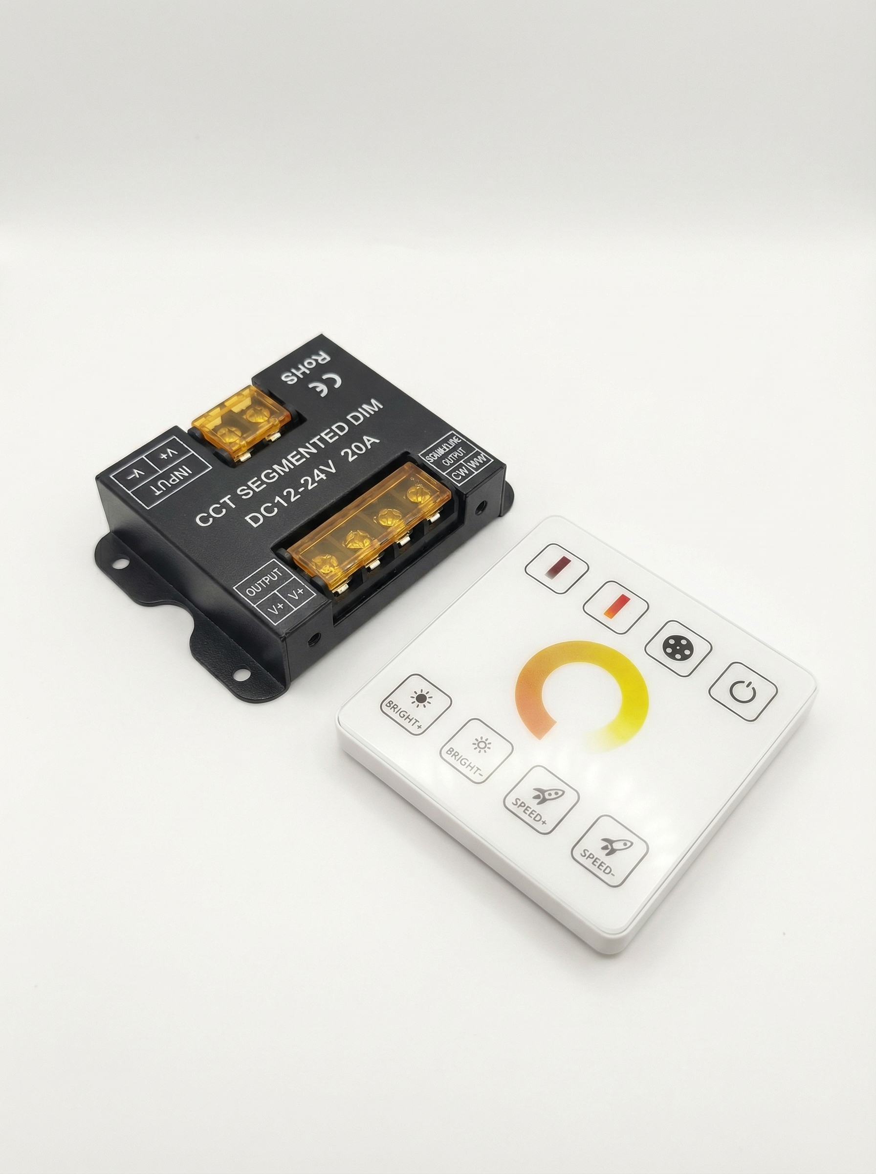 Сенсорная панель CCT поставляется в комплекте с металлическим контролером, к которому подключается лента. Контроллер не перегревается и легко выдерживает нагрузку даже при круглосуточном использовании.