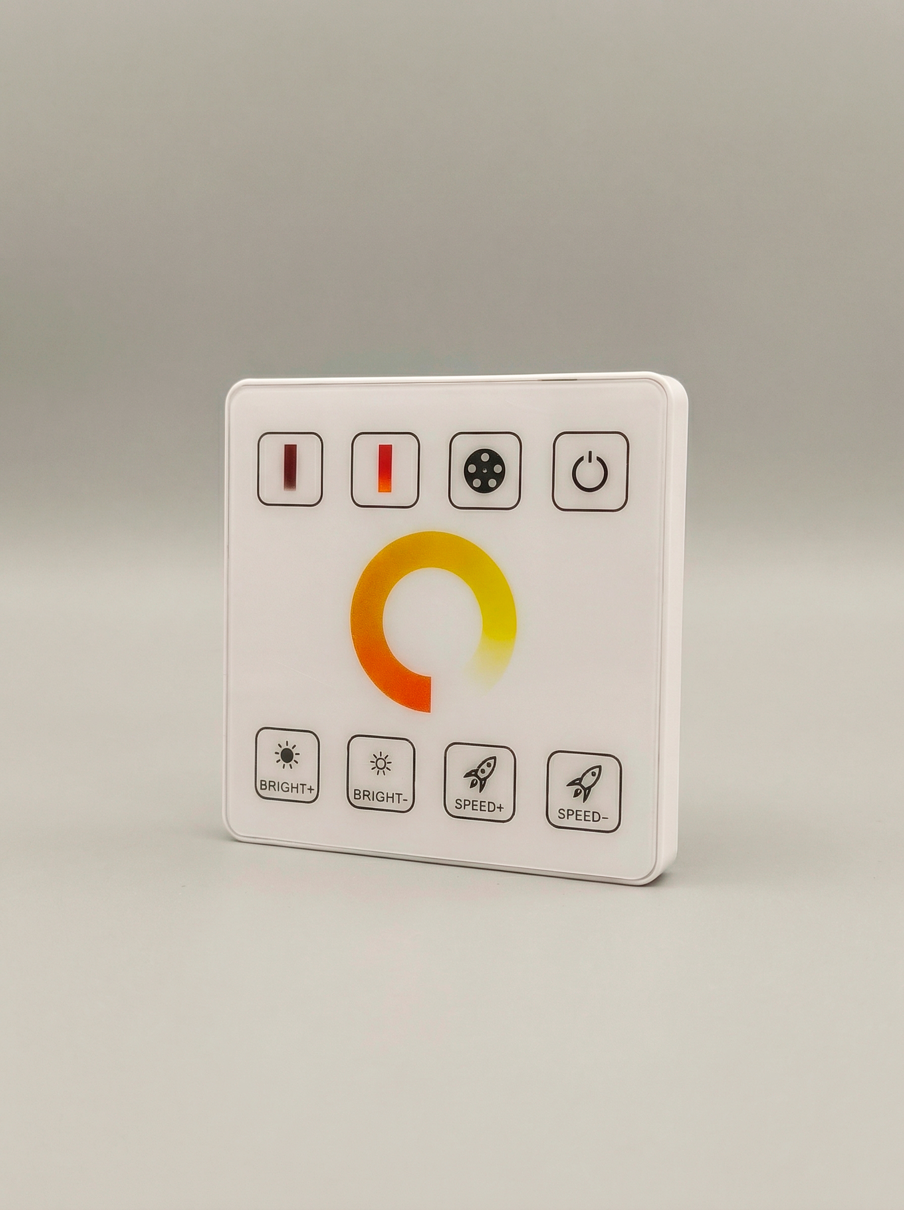 Сенсорная панель используется для светодиодной ленты CCT и позволяет плавно менять цвет подсветки от белого теплого (2700К) до белого холодного (6500К). В нее уже предустановлены динамические режимы, вроде плавной смены оттенка цвета, пульсации и т.д. Как и другие модели сенсорных панелей серии CON-RFPAN она также позволяет гибко менять яркость и включать/выключать светодиодную подсветку. Это простое в установке и эксплуатации устройство, полностью раскроет функционал вашей CCT ленты!