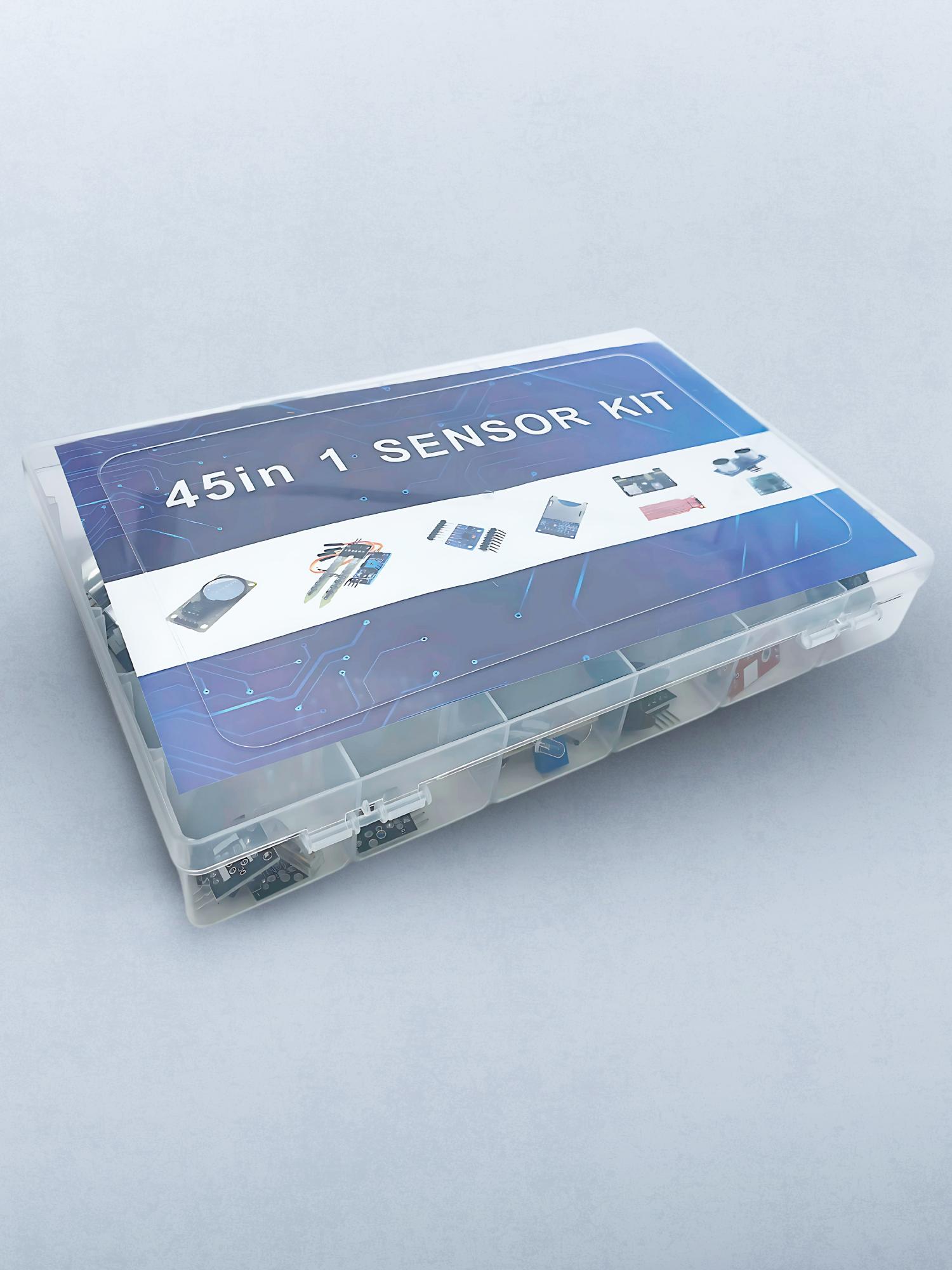 Набор 45 в 1 - это улучшенная и расширенная версия популярного комплекта, включающая 45 тщательно подобранных модулей, идеально подходящих для работы с Arduino, Raspberry Pi, ESP8266, ESP32 и другими микроконтроллерами. Это отличный инструмент как для новичков, так и для опытных специалистов, создающих проекты в сфере IoT, автоматизации, робототехники и «умного дома».