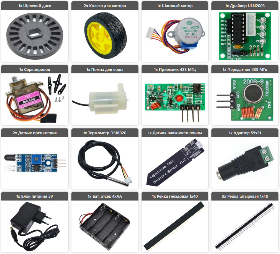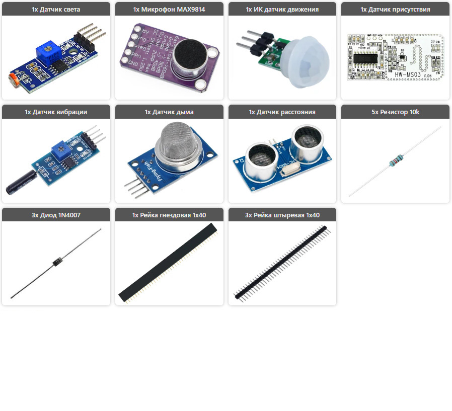 Вы можете найти безымянные наборы ардуино на алиэкспресс, которые стоят в разы дешевле нашего. Однако прежде чем купить такой набор, проверьте состав. Обычно составлены они без всякой системы и логики и, зачастую, включают в себя только резисторы, провода, коннекторы, то есть набор бесполезной самой по себе мелочевки, к которой необходимы микроконтроллеры, датчики и модули. Этих комплектующих, то есть самой дорогой и важной части, в наборе с алиэкспресс либо не будет совсем, либо будут только самые простые. Качество и безопасность модулей из такого комплекта с aliexpress тоже оставляет желать лучшего. Кроме того, у вас не будет инструкций и схем на русском языке.