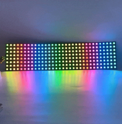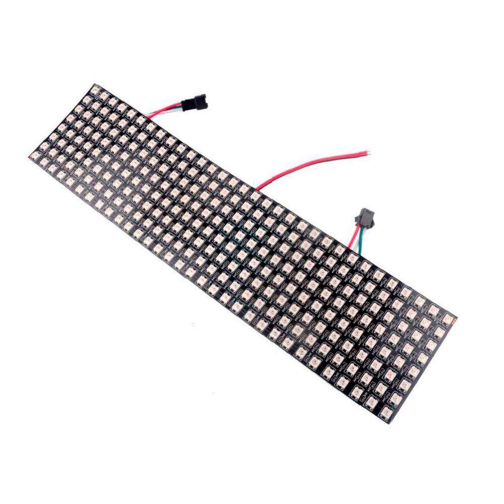 Адресная матрица WS2812b 8х32 50w 5v - это прямоугольный вариант матрицы с адресными диодами на гибкой алюминиевой подложке. Состоит из 256 диодов 5050 с чипами WS 2812 b (в каждом диоде – отдельный чип, за счет чего каждый пиксель на матрице управляется отдельно), размер матрицы 32 х 8 сантиметра, 32х8 диодов соответственно. Адресные RGB матрицы используют для создания различных проектов от мелких поделок с электроникой до led панелей и видео фасадов.