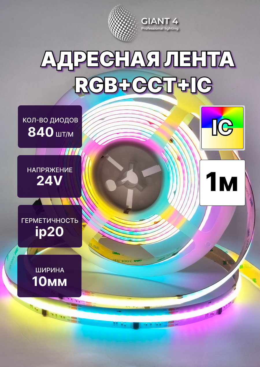 Светодиодная адресная лента COB 24v 26W 840led ip20 RGB+CCT+IC
