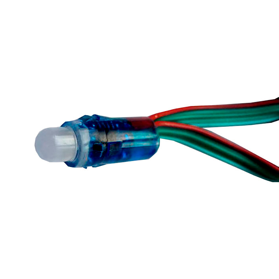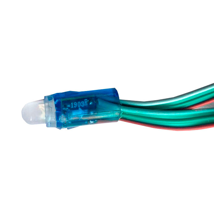Адресный светодиодный пиксель 12V 0,3W с чипом WS2811 (UCS1903). Это управляемый полноцветный RGB пиксель длиной 12мм. Поставляется в связке из 50 штук с проводами и по сути представляет собой герметичную адресную гирлянду. Пиксель 1903 поддерживает все функции адресных светодиодов: режим "бегущего огня", "волны", цветомузыки и другие режимы динамической подсветки.