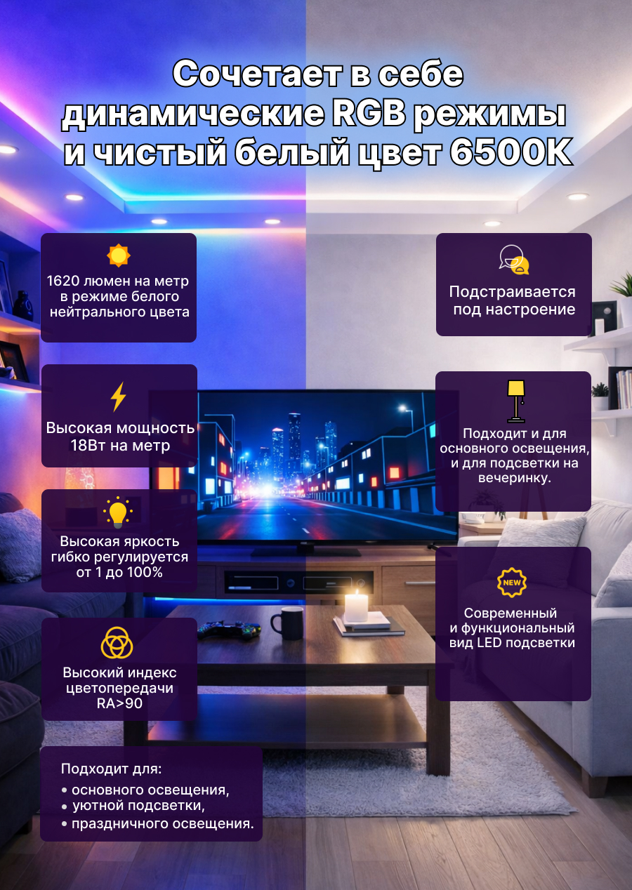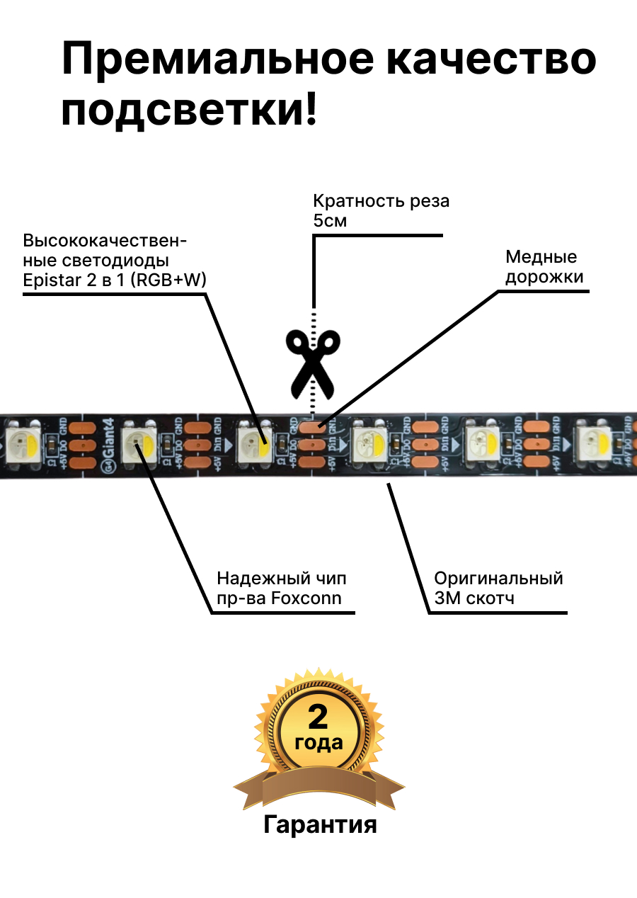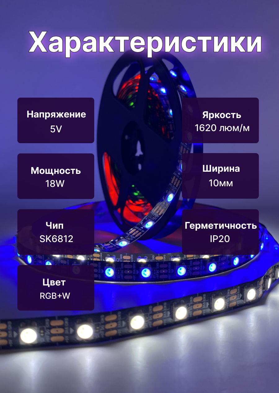 - Адресная лента 5050 SK6812 60led не защищена от влаги и предназначена для использования внутри сухих отапливаемых помещений.
