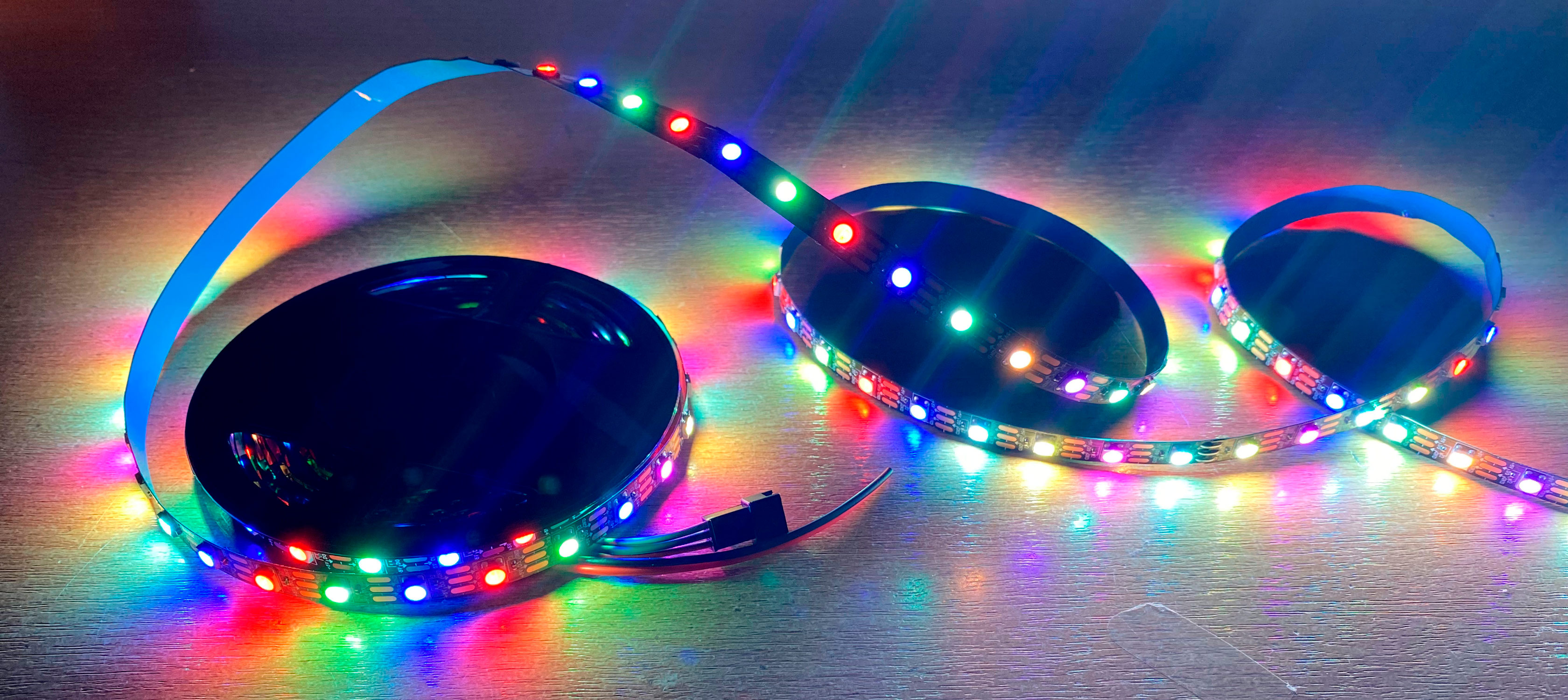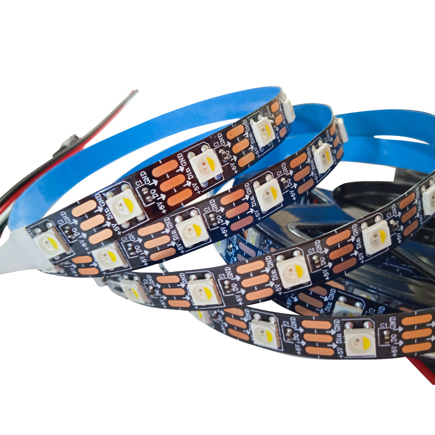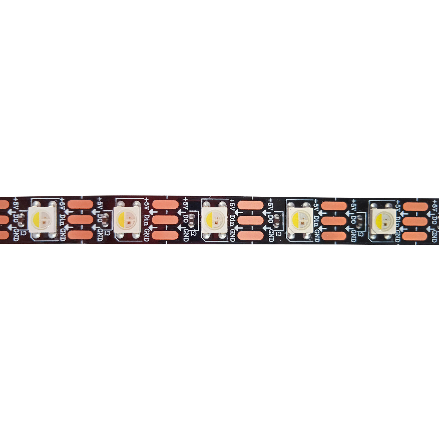 Адресная лента SK6812 RGB+W это один из самых современных видов светодиодных лент из представленных на рынке. Адресная лента SK6812 RGBW отличается от других лент не только чипом. Каждый диод этой ленты поделен пополам: одна половина светит как обычная адресная лента - любым цветом по запросу от контроллера, а вторая - белым холодным цветом 6500К. Это позволяет решить извечную проблему адресных и обычных RGB лент: они не умеют светить чистым белым цветом. Всегда получаются либо синеватые, либо розоватые, либо еще какие-то оттенки. А для адресной ленты RGBW SK6812 такой проблемы не существует. Кстати за счет дополнительного диода лента SK6812 светит в целом ярче, чем адресная лента WS2811 и WS2812b.