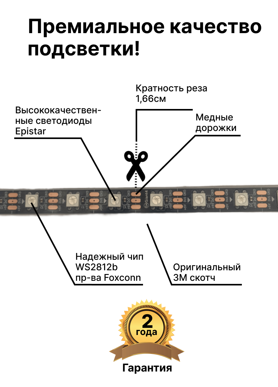 Внимание! При заказе неполной катушки, адресная лента может прийти без припаянных коннекторов на концах!