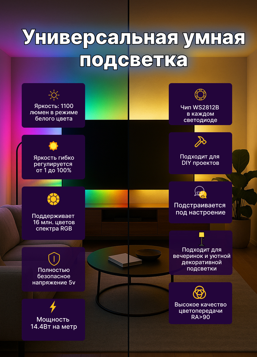 - Это низковольтная лента напряжением 5 вольт. Это значит, что она не может ударить током человека. Ее можно трогать во включенном состоянии.