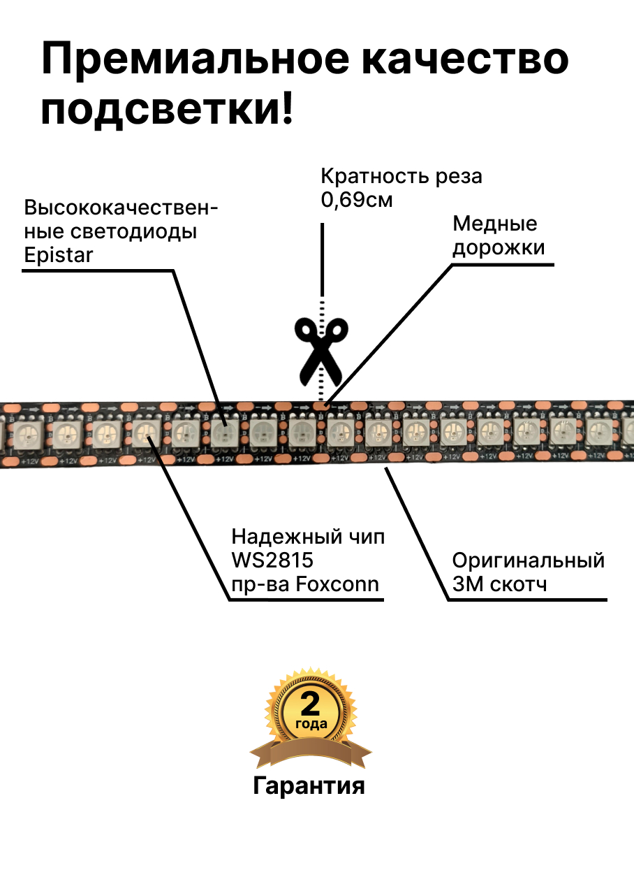Внимание! При заказе неполной катушки, адресная лента может прийти без припаянных коннекторов на концах!