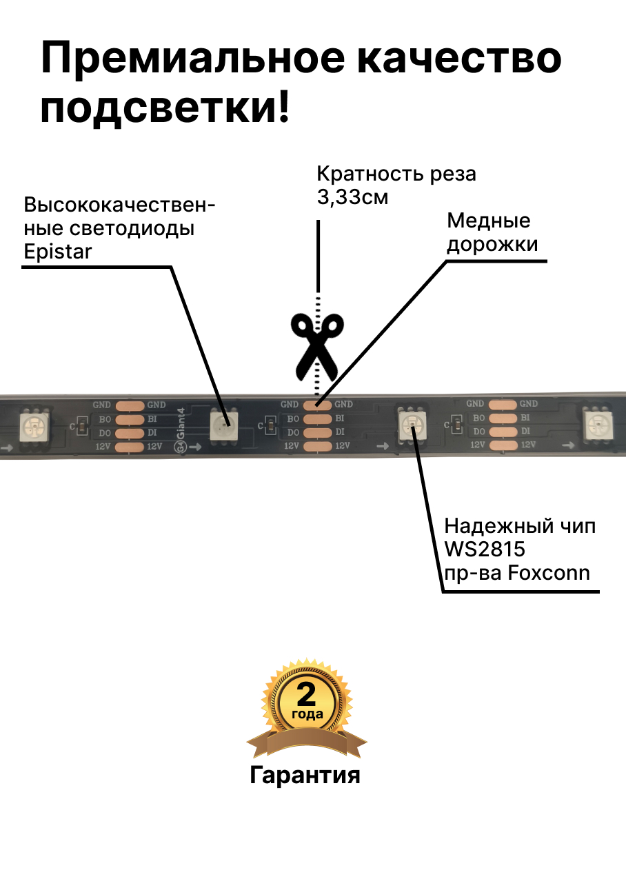 Внимание! При заказе неполной катушки, адресная лента может прийти без припаянных коннекторов на концах!