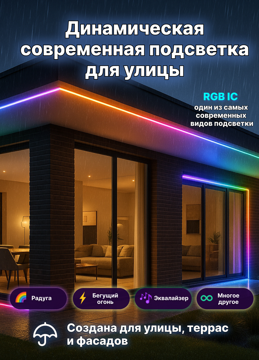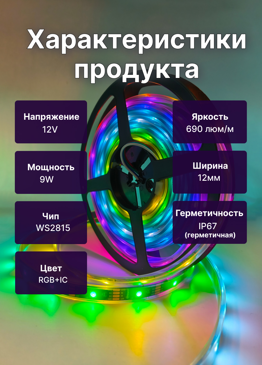 Герметичная адресная лента WS2815 30led ip68 защищена от влаги специальным кожухом, залитым внутри силиконом под давлением. Такая конструкция исключает проникновение влаги внутрь даже при механическом повреждении оболочки. Это наивысшая степень защиты, доступная для светодиодных лент на сегодняшний день. Чип WS2815 - один из самых продвинутых и удобных для работы. Высокая частота передачи данных, качественный, долговечный чип, гарантия 3 года, хорошая устойчивость к холоду (до -40 градусов) делают адресную ленту с чипом WS2815 самым современным и качественным вариантом для динамической подсветки.