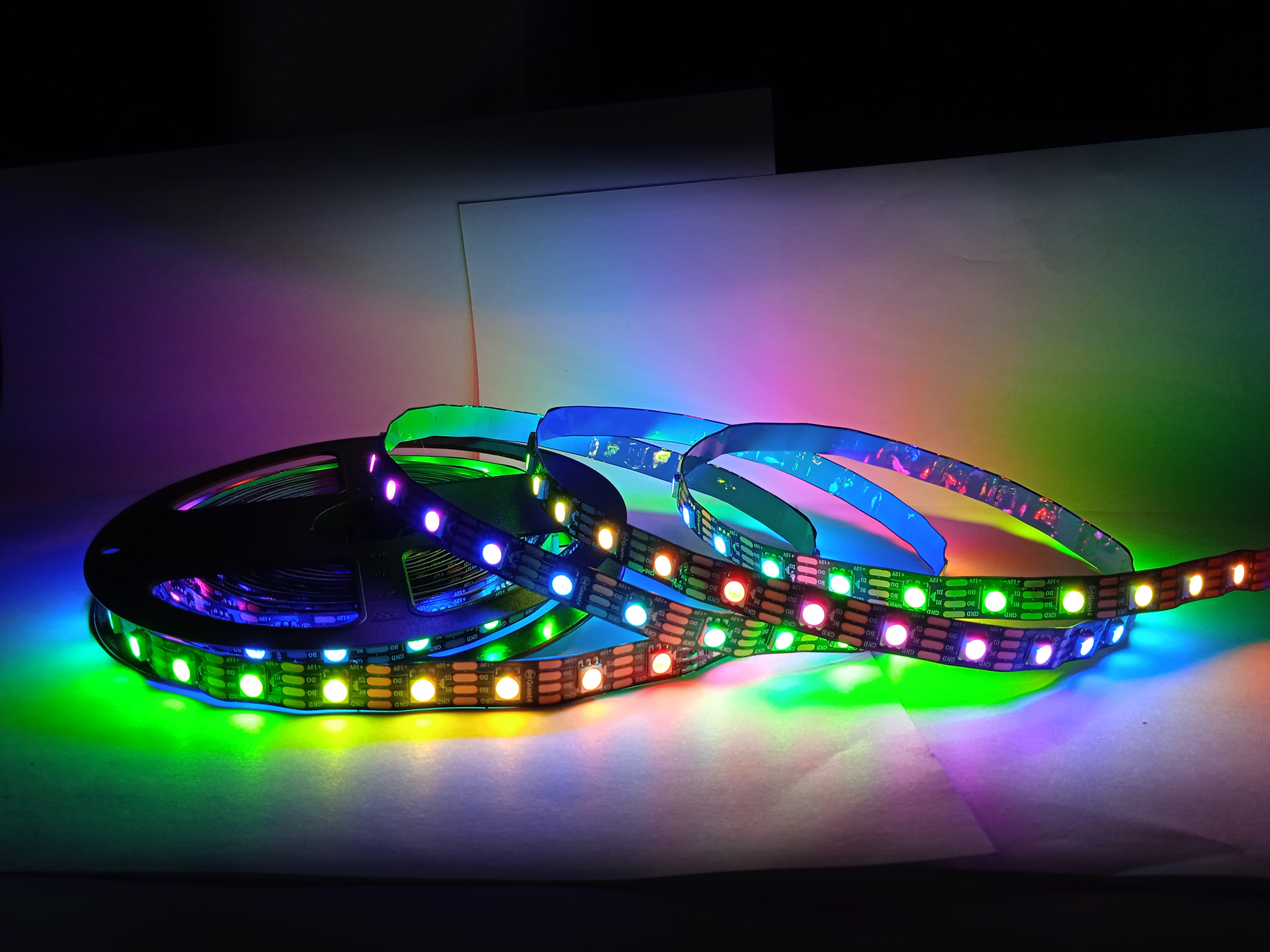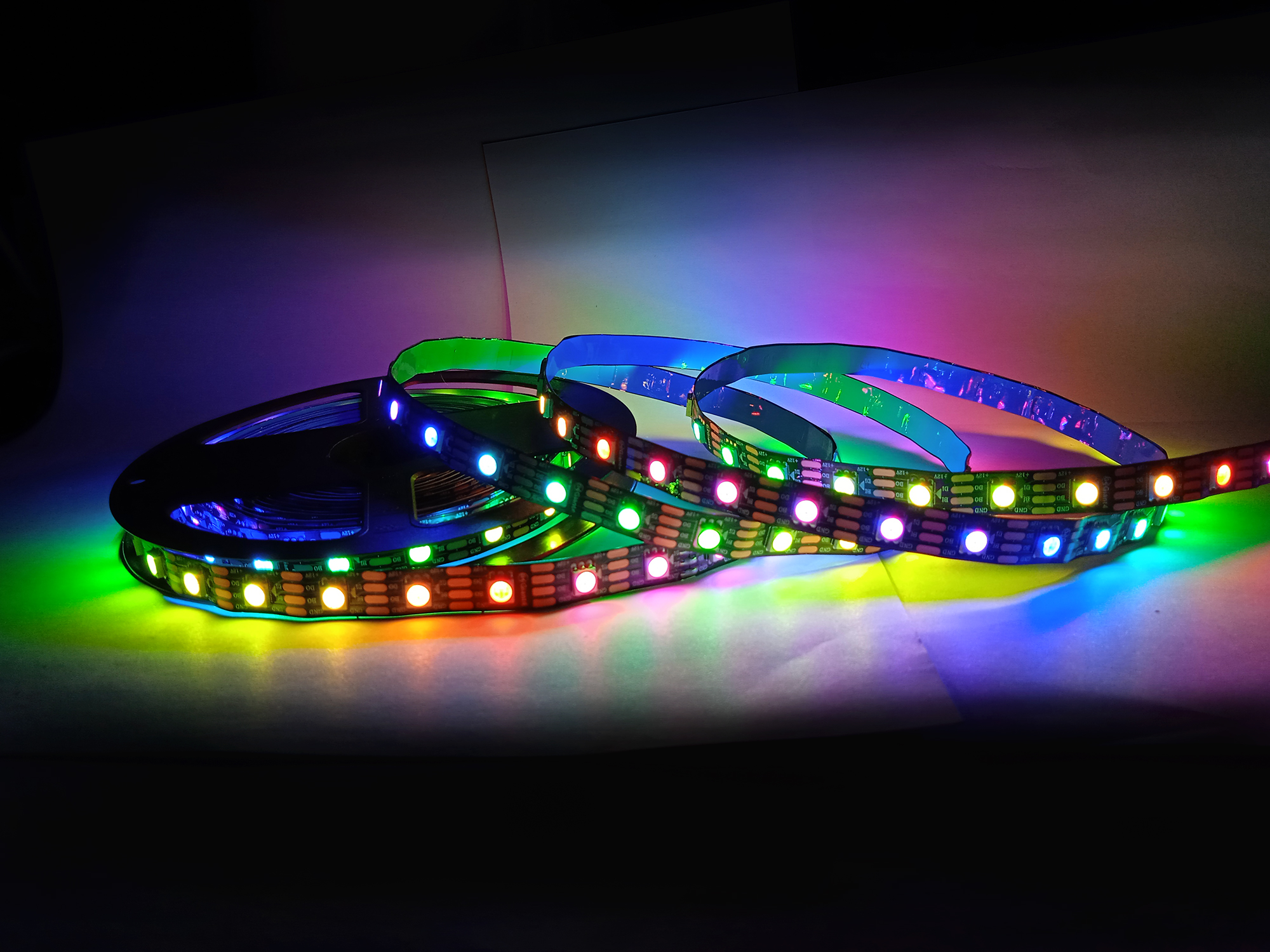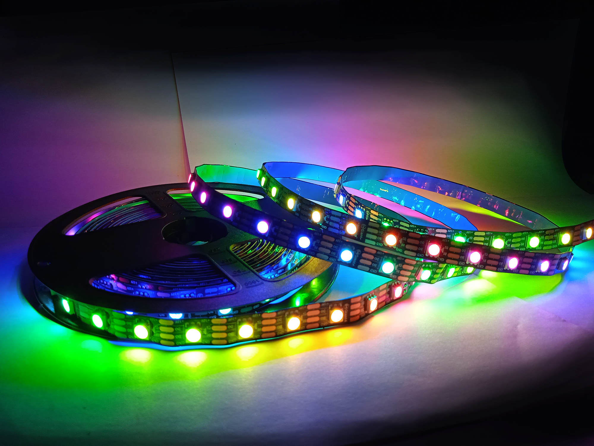 Лента ws 2815 более яркая и мощная, а также - оснащена дополнительным каналом данных, позволяющим передавать сигнал дальше даже в случае проблем с одним из диодов (у ленты ws2812b или 2811 вся линия, следующая за "проблемным" диодом просто отключилась бы). Еще одним важным плюсом адресной ленты WS2815 является ее устойчивость к морозам. Лента с чипами предыдущих поколений могла работать при температурах не ниже -25 градусов (дальше зависала), а лента WS2815 рассчитана на работу при морозах до -40, что делает ее, по сути, единственным вариантом для холодных регионов нашей страны при использовании без отопления или на улице.