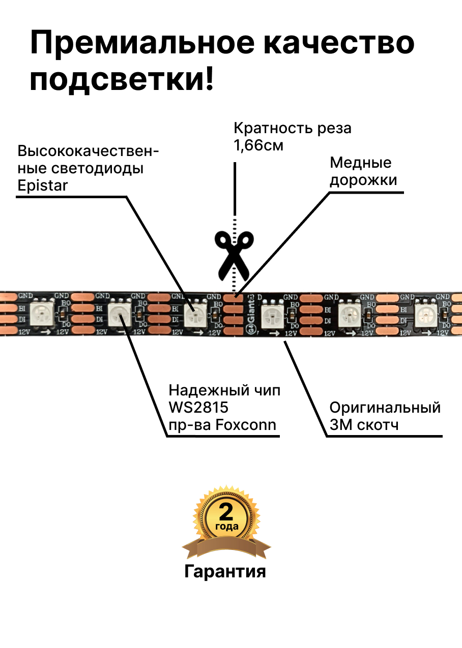 Внимание! При заказе неполной катушки, адресная лента может прийти без припаянных коннекторов на концах!