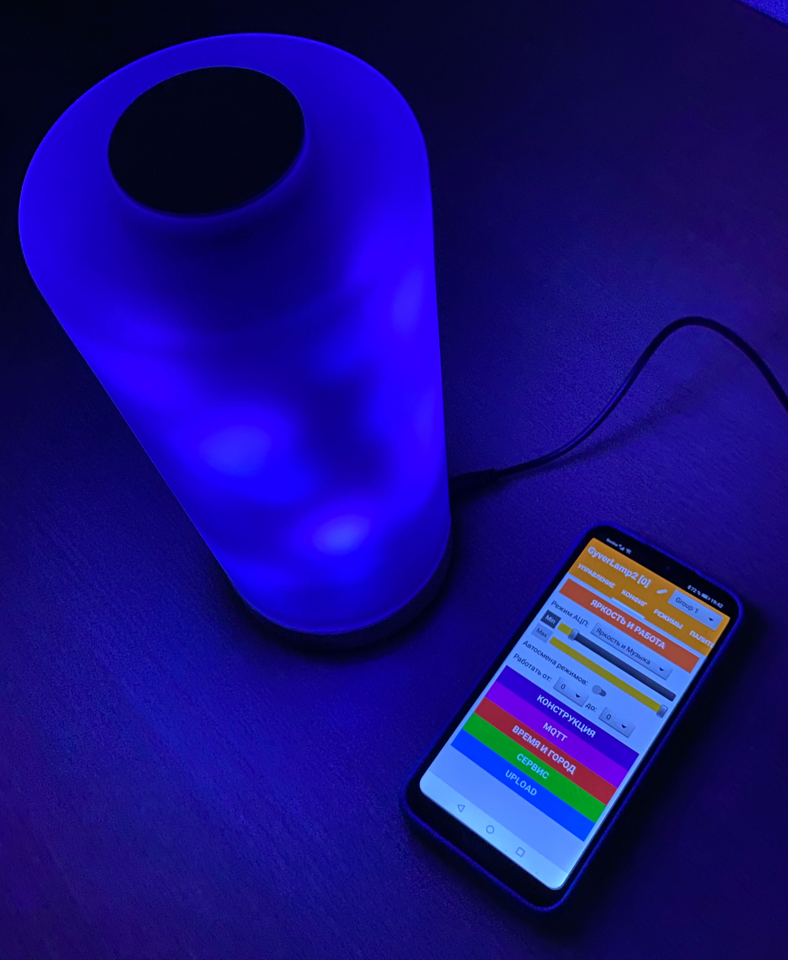 Это готовый к использованию, собранный светильник Gyverlamp2. Вы можете воткнуть вилку в розетку и начать пользоваться лампой. Кстати, в подарок к каждой лампе идет сувенирный магнитик от разработчика этой волшебной лампы - Алекса Гайвера!