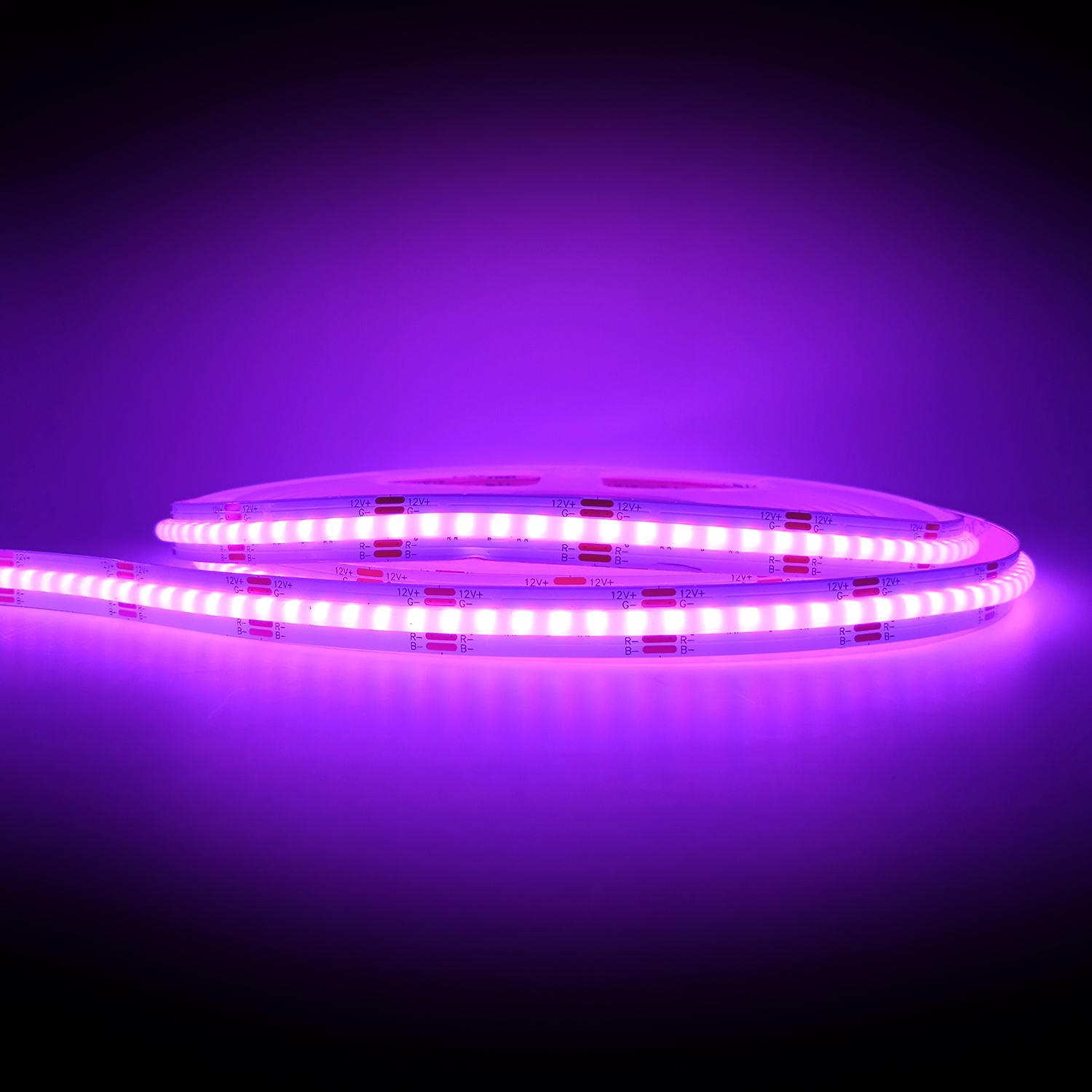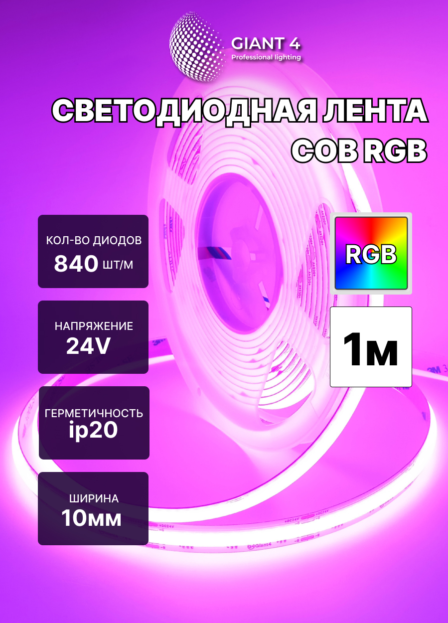 - Светодиодная RGB COB лента 840led ip20 не защищена от влаги и предназначена для декоративной подсветки внутри помещений. Она может светить любым цветом получаемым смешением красного, зеленого и синего, а это очень широкий спектр. RGB лента - быстрый и недорогой способ сделать обстановку в помещении более современной и креативной. Следует учитывать, что для полноценной работы RGB ленте нужен контроллер.