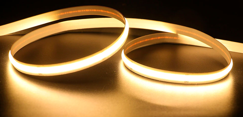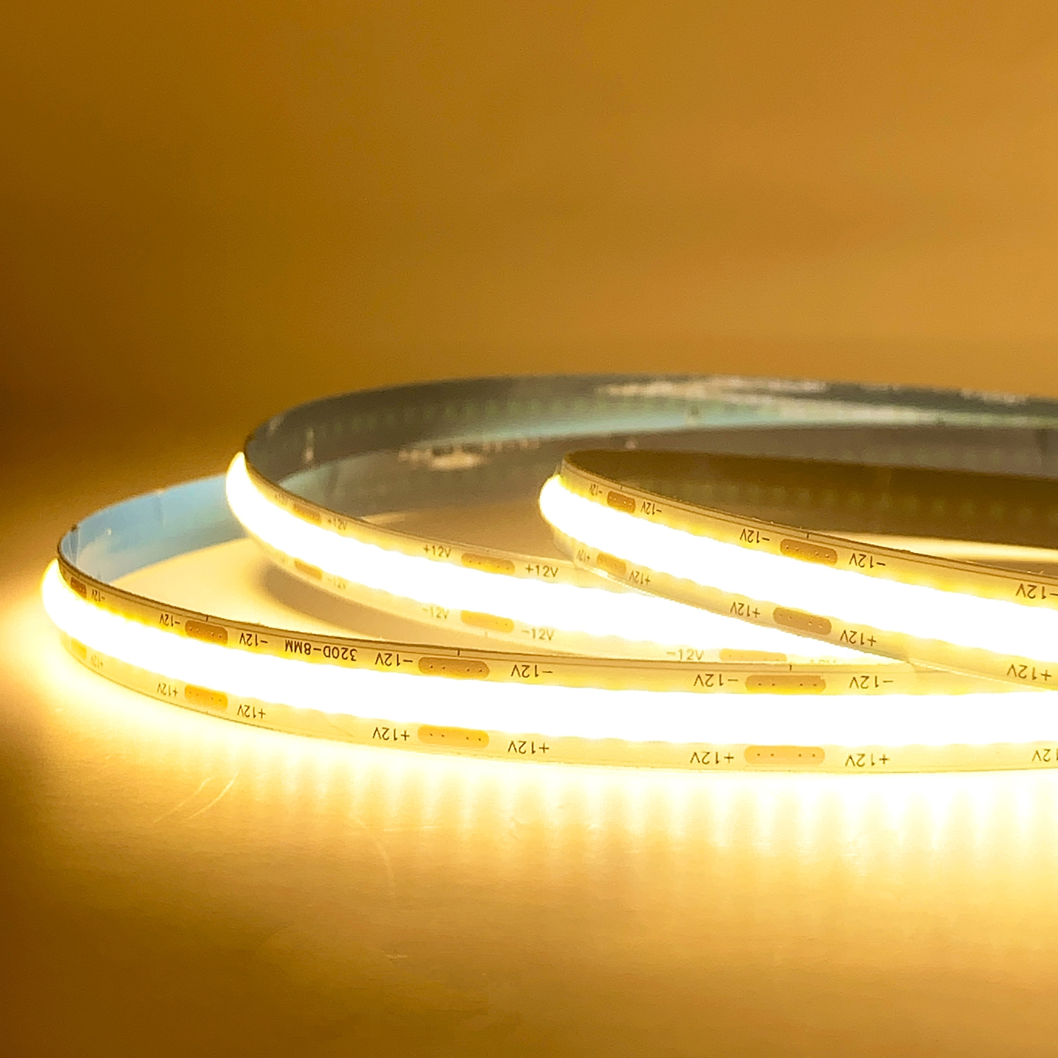 Светодиодная лента COB - это новое поколение лент, которые производятся с использованием технологии Chip-on-Board что переводится как "микросхема на плате". Это означает, что у ленты COB диоды припаяны не к корпусу, а затем - к плате, а напрямую к печатной плате с последующей изоляцией сверху. Это позволяет сильно увеличить количество светодиодов на метр (их тут 480 штук) и полностью исключить видимость "темных пятен" - зазоров между диодами.