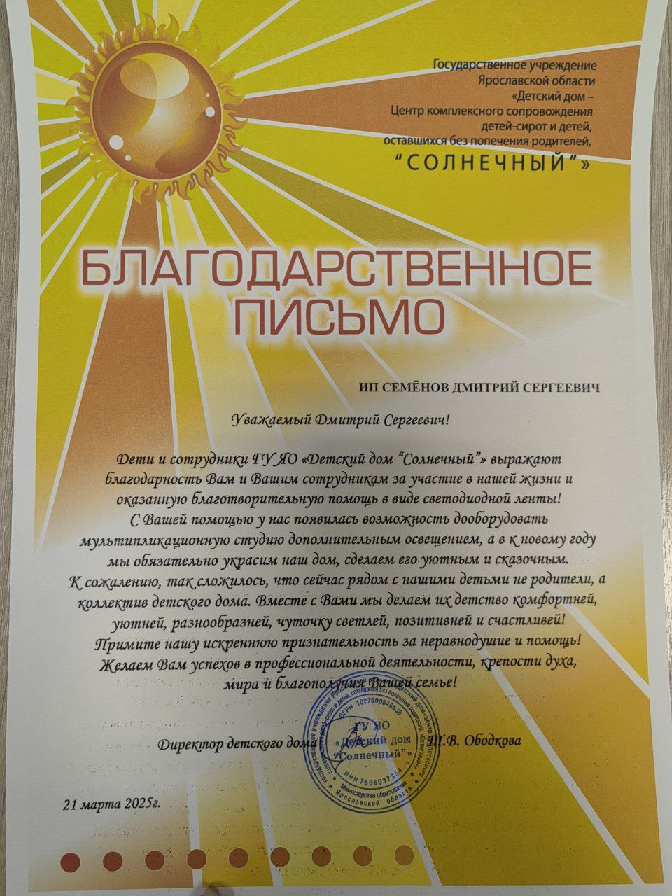 Благодарственные письма: